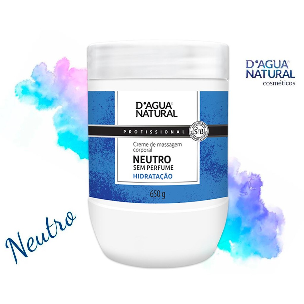 Creme De Massagem Corporal Dagua Natural Neutro 650g Sem Perfume Hidratação