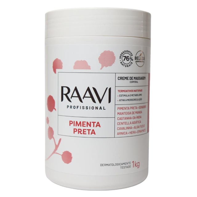 | Creme De Massagem Corporal Drenagem Pimenta Preta Raavi 1kg este produto | R$ 161,52 | 20% | — | — |