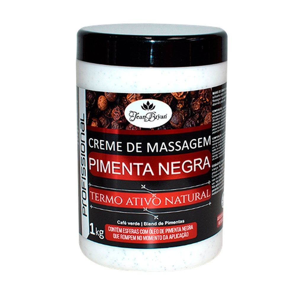 Creme de Massagem Jean Bryan Pimenta Negra - 1kg Creme de Massagem Pimenta Negra 1Kg: Contém em sua composição esferas que proporcionam uma liberação controlada de extrato de pimenta negra, agente termogênico NATURAL. Estimulando o metabolismo e circulação local, auxiliando na redução de medidas e celulite Como usar: Aplicar a quantidade suficiciente sobre o local a ser massageado. Massagear suavimente até que o produto seja absorvido pela pele.