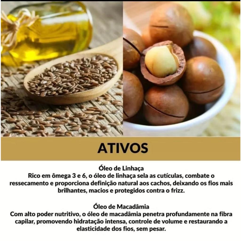 Creme para Pentear Cachos com Óleo de Linhaça e Macadâmia – Definição, Nutrição e Controle do Frizz – Ativador de Cachos 300g O cuidado que seus cachos merecem , com ativos poderosos e alta performance! O Creme para Pentear Cachos foi desenvolvido pra dar controle, nutrição e definição intensa aos fios ✨, sem pesar! 💨 Ideal para o uso diário 🗓️, ele facilita o desembaraço , protege contra o frizz ❌🌪️ e valoriza o formato natural dos cachos 💓, deixando-os leves, alinhados e com brilho radiante 🌞. Sua fórmula mágica 🧪 é enriquecida com Óleo de Linhaça e Óleo de Macadâmia , dois queridinhos da natureza que cuidam dos seus cachos com amor 💕: ✔️ Óleo de Linhaça: Rico em ômega 3 e 6 💊, sela as cutículas 🚪, combate o ressecamento e realça a definição , com brilho e maciez incríveis . ✔️ Óleo de Macadâmia: Nutrição profunda , controle do volume e mais elasticidade . Tudo isso com uma hidratação duradoura sem pesar! 🪶 Benefícios que seus cachos vão amar: ✨ Alta definição dos cachos 🌿 Nutrição profunda e brilho natural ❌ Redução imediata do frizz 💁♀️ Desembaraço fácil e rápido 🪶 Textura leve e absorção instantânea ✅ Indicado para TODAS as curvaturas (2A a 4C) Pode ser usado diariamente com os cabelos úmidos 💧 ou secos 🌬️. Conteúdo: 1 Creme para Pentear Cachos – 300g 🗓️ Uso diário | 🚿 Sem enxágue | 💛 Textura leve e cremosa Deixe seus cachos perfeitos mais definidos , saudáveis e com movimento natural todos os dias!