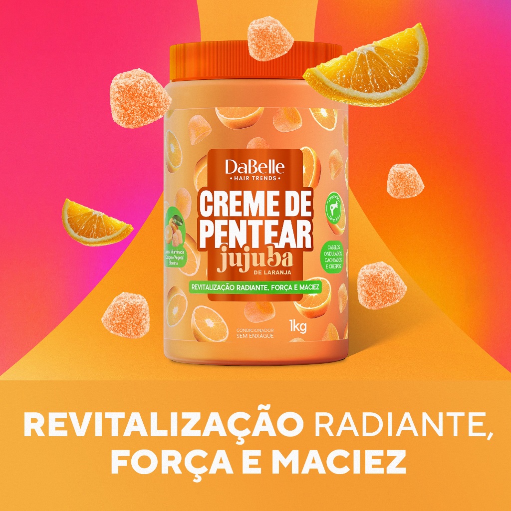 DaBelle Hair Creme de pentear Jujuba de laranja 1kg Que tal exibir cabelos revitalizados? O Creme de Pentear Jujuba de Laranja 1kg é uma verdadeira dose de força e revitalização para deixar seus cachos mais resistentes, definidos e cheios de movimento! Com ação fortalecedora e textura cremosa, ele revitaliza os fios, ajuda na memorização da curvatura e realça o brilho, entregando aquele toque vibrante que transforma qualquer finalização. A misturinha é liberada: combine com a Gelatina Jujuba ou use sozinho na sua rotina — o resultado é sempre um cabelo forte, definido e cheio de vida! O que o Produto Contém: Complexo Jujuba Definida: combinação poderosa para revitalizar, fortalecer e definir os cachos. Laranja Vitaminada: Revitaliza os fios, fortalece e mantém a elasticidade natural, deixando os cachos resistentes, cheios de movimento e com brilho vibrante. Colágeno Vegetal + Glicerina: Fortalecem a estrutura dos cachos, ajudam a prevenir a quebra e retêm a umidade natural dos fios, promovendo maciez, elasticidade e definição duradoura, sem ressecamento. Benefícios: Revitalização e Força: Fios mais resistentes e cheios de vida. Definição e Movimento: Cachos definidos, leves e com balanço natural. Brilho Vibrante: Realce instantâneo da luminosidade dos fios. Proteção Térmica: Ideal para finalizar com difusor ou secagem natural. Uso Diário: Fórmula leve que não pesa os cachos. Embalagem de 1kg: Rendimento prolongado para finalizações poderosas. Modo de Uso: Usando sozinho: Espalhe nas mãos a quantidade ideal para o seu cabelo. Aplique nos fios úmidos, mecha por mecha. Desembarace com um pente de dentes largos e amasse bem, das pontas até a raiz. Finalize como preferir — com difusor ou secagem natural. Na misturinha: Misture o Creme de Pentear Jujuba de Laranja com a sua Gelatina Jujuba favorita (morango, uva, laranja ou melancia). Aplique nos fios úmidos mecha por mecha. Finalize conforme seu estilo: fitagem, dedoliss ou volume natural. Liberdade total pra você escolher como quer seus cachos hoje! 🍊💛