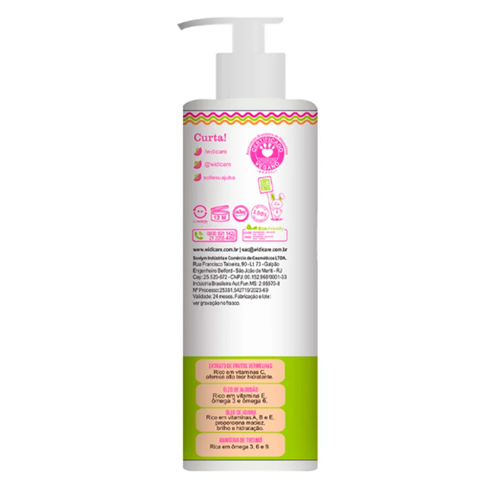 O que é? O FINALIZANDO A JUBINHA CREME DE PENTEAR EFEITO LEVINHO auxilia na hidratação e definição de todos os fios, especialmente ondulados e cacheados, de forma suave, transformando esses cabelinhos em Jubinhas lindas, leves e soltas! Produto hipoalergênico e dermatologicamente testado, com proteção térmica e filtro solar. Como usar? Divida o cabelo ainda úmido em mechas finas, coloque uma quantidade suficiente do FINALIZANDO A JUBINHA CREME DE PENTEAR EFEITO LEVINHO nas mãos e aplique fazendo fitas. Repita esse processo por todo o cabelo e depois modele as mechas de baixo para cima para ajudar na definição. Deixe secar naturalmente ou com ajuda de um difusor. Resultado: Definição, brilho e maciez. Ingredientes: Água – Álcool Cetoestearílico – Cloreto de Cetrimônio – Glicerol – Laurato de Isoamila e Óleo da semente de Girassol – Propilenoglicol – Óleo da Semente de Babaçu – Hietelose – Metossulfato de Berrentrimônio – Óleo da Semente de Algodoeiro – Óleo da Amêndoa de Tucumã e Dextroalfatocoferol – Óleo da Semente de Jojoba – Extrato de Ginjeira / Extrato de Framboesa / Extrato de Amora – Berrenamidopropil Dimetilamina / Metossulfato de Dipalmitoiletil Hidroxietilmônio / Álcool Cetílico / Álcool Estearílico / Ácido Láctico – Edetato Dissódico – Butil-hidroxitolueno – Poliquatérnio-7 – Ácido Cítrico – Octinoxato – Poliquatérnio-55 – Fragrância – Fenoxietanol e Caprilil Glicol. Ingredients: Aqua – Cetearyl Alcohol – Cetrimonium Chloride – Glycerin – Isoamyl Laurate (and) Helianthus Annuus Seed Oil – Propylene Glycol – Orbignya Oleifera Seed Oil – Hydroxyethylcellulose – Behentrimonium Methosulfate – Gossypium Herbaceum Seed Oil – Astrocaryum Vulgare Kernel Oil (and) Tocopherol – Simmondsia Chinensis Seed Oil – Prunus Cerasus Extract / Rubus Idaeus Fruit Extract / Morus Nigra Fruit Extract – Behenamidopropyl Dimethylamine / Dipalmitoylethyl Hydroxyethylmonium Methosulfate / Cetyl Alcohol / Stearyl Alcohol / Lactic Acid – Disodium EDTA – BHT – Polyquaternium-7 – Citric Acid – Ethylhexyl Methoxycinnamate – Polyquaternium-55 – Fragrance – Phenoxyethanol (and) Caprylyl Glycol. pH: 3,5 - 4,5 Ativos: Extrato de frutas vermelhas: Rico em vitaminas C, oferece alto teor hidratante. Óleo de algodão: Rico em vitamina E, ômega 3 e ômega 6. Óleo de jojoba: Rico em vitaminas A, B e E, proporciona maciez, brilho e hidratação. Manteiga de Tucumã: Rica em ômega 3, 6 e 9.
