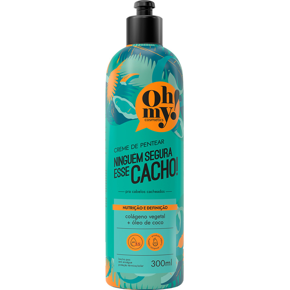 > Importante: Informamos que a Oh My! mudou suas embalagens e os nomes de algumas linhas recentemente. Por isso temos alguns produtos diferentes nas fotos do anúncio, por estarmos atualizando nosso estoque conforme recebemos os produtos do fabricante. Obrigada!_x000d_ _x000d_ Creme de pentear Ninguém segura esse cacho!_x000d_ _x000d_ Indicação:_x000d_ _x000d_ > Pra cabelos cacheados_x000d_ > Nutrição e definição_x000d_ _x000d_ Modo de usar: é muito fácil! Com o cabelo seco ou úmido, aplique o creme de pentear mecha a mecha. Depois, desembarace os fios com os dedos ou pente largo e vá amassando de baixo pra cima, para aquela definição perfeita. Não precisa enxaguar._x000d_ _x000d_ Especificações:_x000d_ _x000d_ > pH 3.5_x000d_ > Proteção térmica e solar_x000d_ > Sem enxágue_x000d_ > Low/no poo_x000d_ > Sem corantes_x000d_ > Sem parabenos_x000d_ _x000d_ Benefícios:_x000d_ _x000d_ > Cacho levinho, definido e com toque suave é tudo que a gente quer. A linha Ninguém segura esse cacho! tá pronta pra deixar seu cabelo poderoso todo dia! Com colágeno vegetal e óleo de coco, ela veio pra acabar com o frizz, nutrir seus fios e valorizar os cachos. _x000d_ _x000d_ O que os nossos ativos fazem:_x000d_ _x000d_ > Colágeno vegetal: define os cachos e protege contra os danos, reduz o frizz e mantem a definição por mais tempo._x000d_ > Óleo de coco: promove uma nutrição ultraprofunda, conferindo brilho, proteção e redução de frizz._x000d_ _x000d_ Selos: _x000d_ _x000d_ Selo “Eu Reciclo”_x000d_ Selo “Certificado Vegano”_x000d_ Selo “Livre de testes, cheios de amor”_x000d_ _x000d_ Anúncio:_x000d_ _x000d_ Creme de Pentear Ninguém Segura Esse Cacho! 300ml Oh My!_x000d_ Sachês Sortidos