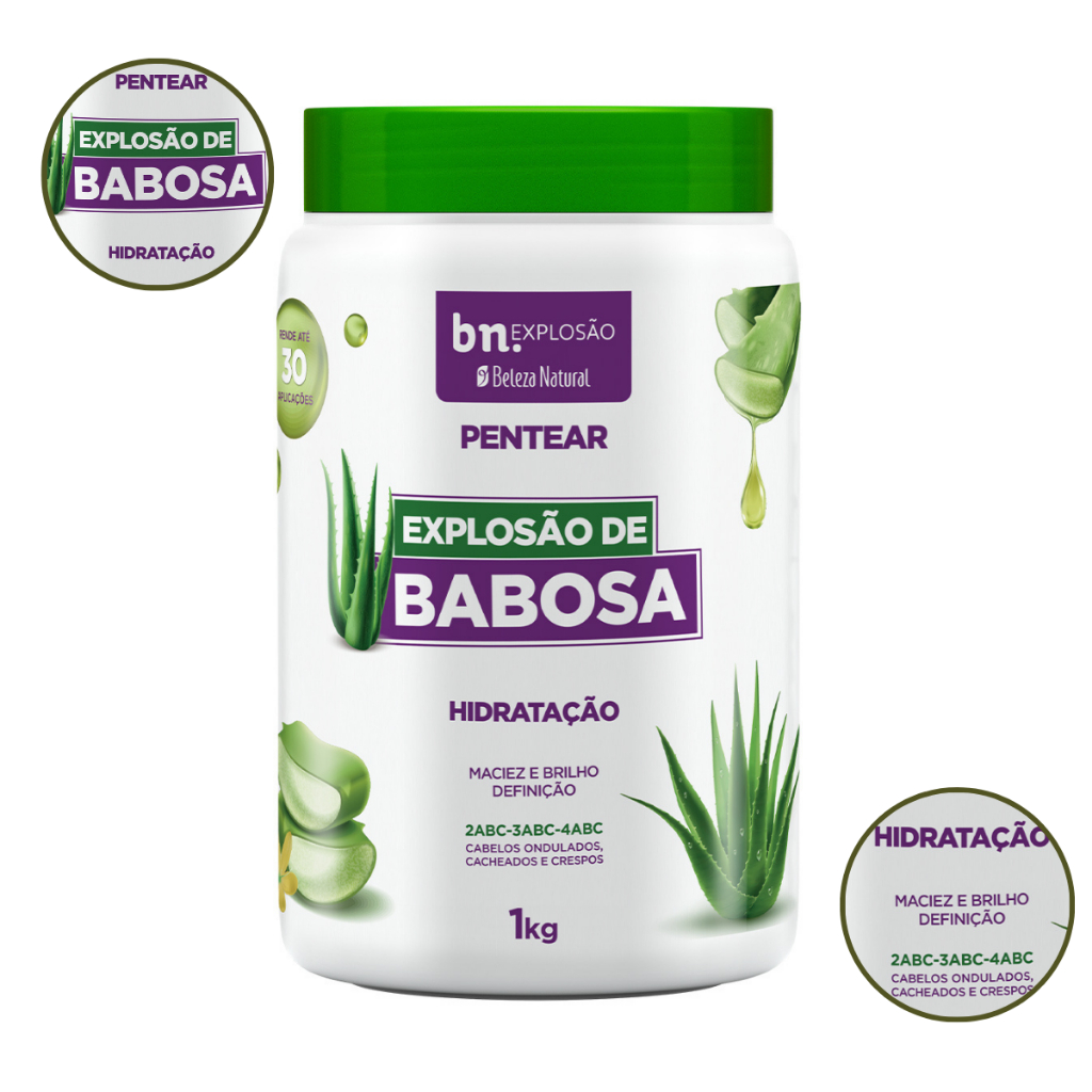 O Creme de Pentear Explosão de Babosa condiciona e hidrata os fios, dando maciez e brilho intenso. Além, de uma poderosa ação anti frizz. -Modo de usar: Espalhe o pentear uniformemente por todo cabelo levemente úmido. Para desembaraçar, use um pente de dentes largos. Caso você queria mais definição, amasse os fios com as mãos em forma de concha. -Ingredientes: água purificada, glicerol, álcool cetoestearílico, óleo mineral, metilsulfato de behentrimônio, cloreto de cetrimônio, álcool etílico, vaselina sólida, ácido cítrico, fenoxietanol, etilhexilglicerina, aloe vera, sorbato de potássio, benzoato de sódio, fragrância (alfa-isometil ionona, salicilato de benzila, butilfenil metilpropional, cumarina, hexil cinamal, limoneno, linalol). -Dimensões: Largura: 10cm Profundidade: 10cm Altura: 17cm Peso: 1Kg