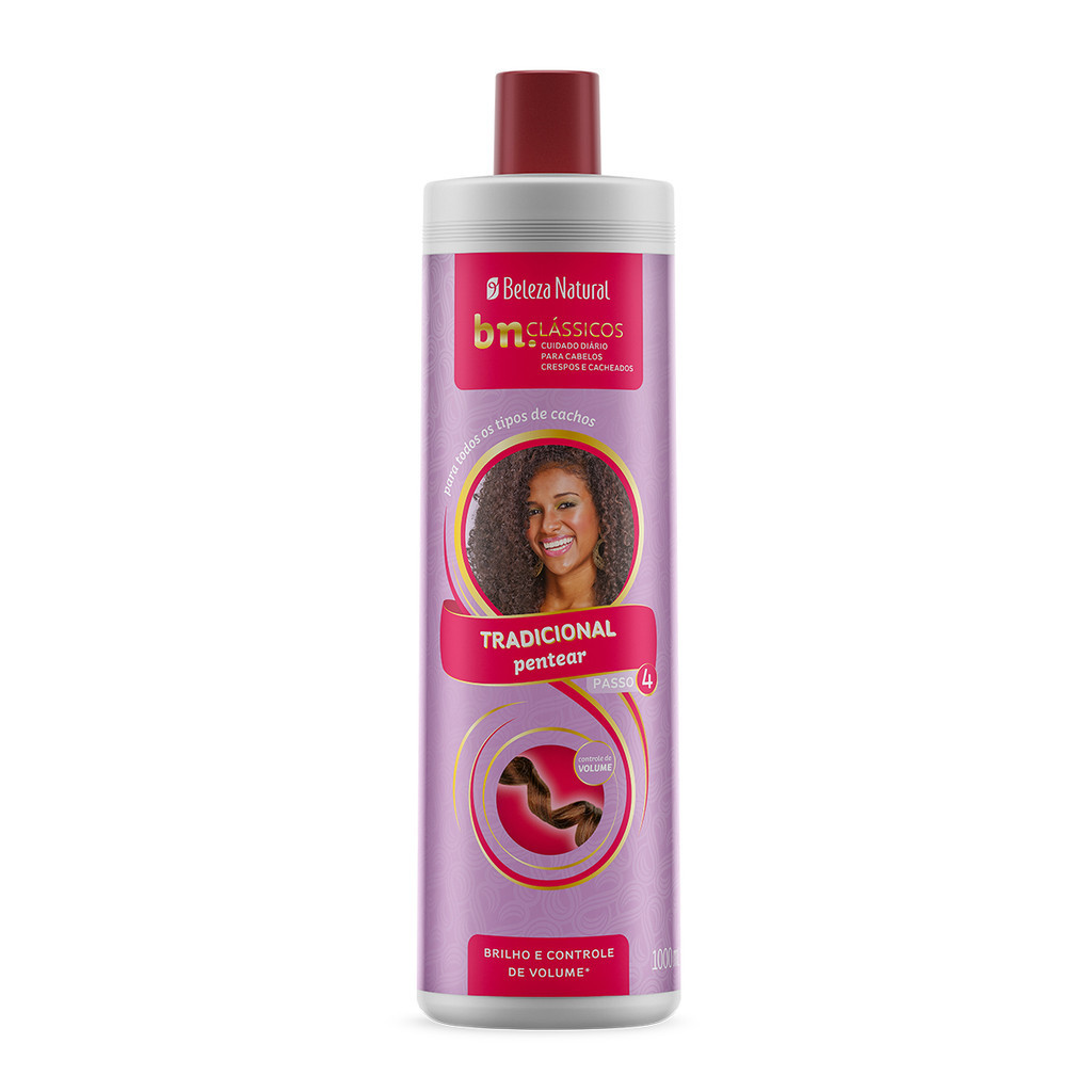 O Pentear Tradicional (1000ml), da linha bn. CLÁSSICOS, auxilia na formação e manutenção dos cabelos crespos e cacheados, e em transição capilar, além de manter os fios hidratados e com volume controlado ao longo do dia. Ideal para quem gosta de um acabamento com efeito molhado e uma super definição. A linha bn.CLÁSSICOS reúne os produtos mais queridinhos e famosos do Beleza Natural para o cuidado diário dos cabelos tipo 3ABC e 4ABC. Composição: ÁGUA PURIFICADA, GLICEROL, ÁLCOOL CETOESTEARÍLICO, ÓLEO MINERAL, VASELINA SÓLIDA, CLORETO DE CETRIMÔNIO, ÁLCOOL ETÍLICO, FRAGR NCIA (ALFA-ISOMETIL IONONA, AMIL CINAMAL, SALICILATO DE BENZILA, BUTILFENIL METILPROPIONAL, CITRONELOL, CUMARINA, HEXIL CINAMAL, HIDROXIISOHEXIL 3-CICLOHEXENO CARBOXALDEÍDO, LIMONENO), METILPARABENO, PROPILPARABENO, CORANTE AMARELO 15985, ÁCIDO CÍTRICO.