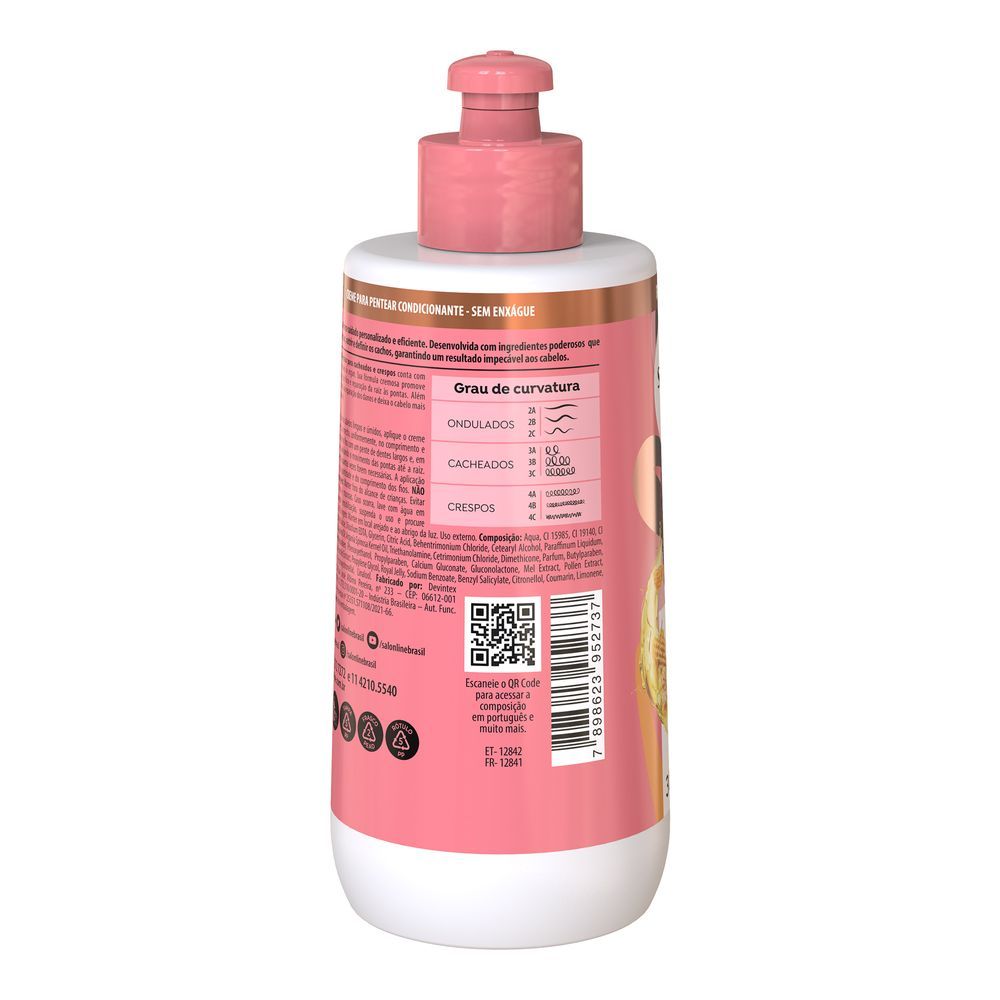 O Creme Para Pentear Salon Line S.O.S Restauração Extrema 300g ajuda a controlar o volume, reduz o frizz e ainda garante fácil desembaraço e cabelos extremamente nutridos e hidratados. Sua poderosa fórmula com Mel e Óleo de Coco, cria uma barreira protetora contra danos externos causados pelo dia a dia. Além disso, é rico em sais minerais e aminoácidos garantindo cabelos fortes, hidratados e nutridos. Salon Line S.O.S Cachos Intensos Mel é livre de parabenos e sal, além de ser veganos. Ativos: Mel: Proteção total da raiz às pontas! Rico em vitaminas, sais minerais e aminoácidos o mel possui ação fortalecedora, ultra hidratante e nutritiva. Possui ação antioxidante e protetora dos fios. Além disso, auxilia pra um couro cabeludo saudável. Óleo de Coco: Já conhecido pelos seu poder mágico de hidratação e nutrição, também é rico em vitaminas e ácidos graxos. Fortalece os fios e proporciona brilho radiante e maciez extrema. Modo de usar: Com os cabelos limpos e úmidos, aplique o Creme Para Pentear Salon Line S.O.S Cachos Intensos Mel mecha a mecha e uniformemente do comprimento às pontas. Desembarace os fios com um pente de dentes largos e, em seguida, amasse-os, iniciando o movimento das pontas até a raiz. Repita o movimento quantas vezes forem necessárias, auxiliará na formação dos cachos. Para melhores resultados, use a linha completa de Salon Line S.O.S Cachos Intensos Mel. Sobre a marca: A Salon Line, uma das maiores fabricantes de cosméticos do Brasil, há mais de 15 anos acompanha a evolução da mulher brasileira. Toda essa vivência fez da empresa uma profunda conhecedora do universo feminino. A empresa está sempre investindo em novas tecnologias e produtos, para oferecer aos clientes, consumidores e profissionais da área o que há de melhor no segmento cosmético mundial. Empresa 100% Nacional, que tem como objetivo especializar-se na beleza das mulheres brasileiras. Sempre desenvolvendo produtos de alta tecnologia, a Salon Line faz do seu slogan a sua realidade: Valorizando todas as belezas.