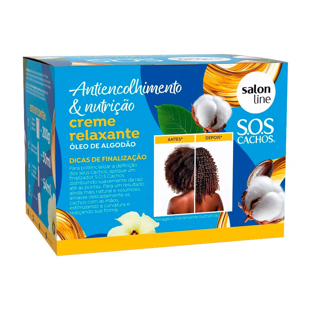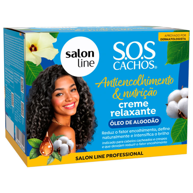O Creme De Relaxamento Salon Line SOS Antiencolhimento E Nutrição 200g é um tratamento capilar especialmente formulado para controlar o volume, reduzir o encolhimento e nutrir profundamente os fios. Sua fórmula enriquecida com óleo de algodão proporciona nutrição intensa, ajudando a repor lipídios, suavizar a fibra capilar e deixar os cabelos mais comportados, brilhantes e com toque sedoso. Esse creme relaxante é ideal para cabelos cacheados, crespos ou rebeldes que precisam de disciplina capilar sem perder a leveza e o movimento natural. Ao reduzir o encolhimento, o produto favorece um aspecto mais alongado dos fios, facilitando o penteado e o controle do frizz. Além disso, oferece um cuidado nutritivo que contribui para a saúde geral dos cabelos, tornando-os mais fáceis de pentear, com brilho e aspecto saudável. O kit contém:1 - Creme Relaxante 200g1 - Líquido Ativador 50ml1 - Shampoo Indicador De Cor 54ml1 - Folheto Explicativo Principais Ativos:Guanidina: Agente relaxante, atua soltando a estrutura dos fios cacheados e crespos, reduzindo o encolhimento e o volume excessivo dos cabelos.Óleo de algodão: Confere hidratação profunda, nutrição e maciez prolongada aos fios.Óleo de coco: Rico em ácidos graxos e vitamina E, fortalece os fios, melhora a nutrição capilar e proporciona brilho e suavidade.Manteigas e outros óleos nutritivos: Ajudam a combater frizz, aportar lipídios e melhorar o controle dos fios, deixando-os mais alinhados e saudáveis.Beneficios:Ajuda a alongar naturalmente os fios, mostrando mais comprimento e menos “bolo de ar” no volume.Solta a estrutura dos cachos e crespos, proporcionando movimento mais natural e menos tensão nos fios.Com óleos nutritivos na fórmula, o produto repõe lipídios essenciais e fortalece a fibra capilar.Os ativos hidratam os cabelos em profundidade, deixando-os mais macios e menos ressecados.Melhora o aspecto geral dos cabelos, deixando com brilho saudável e toque sedoso.Contribui para reduzir o frizz, facilitando o penteado e o alinhamento dos fios.O cabelo fica com aspecto natural, leve e comportado.Quando usado conforme as instruções, proporciona um relaxamento seguro e um visual consistente.Modo de usar: Aplique o creme relaxante conforme as instruções do profissional, evitando o contato com o couro cabeludo. Deixe agir pelo tempo recomendado e enxágue bem. Realize o processo de neutralização e hidratação após o uso. Sobre a marca: A Salon Line é uma marca 100% brasileira e tem como objetivo primordial a especialização da beleza das mulheres brasileiras. Seus produtos são desenvolvidos com alta tecnologia e a marca realiza altos investimentos para proporcionar a seu clientes e consumidores potenciais os melhores produtos do segmento cosmético mundial. Presente no Brasil a mais de 15 anos, tornou-se referência de qualidade e confiança no mercado em que atua.