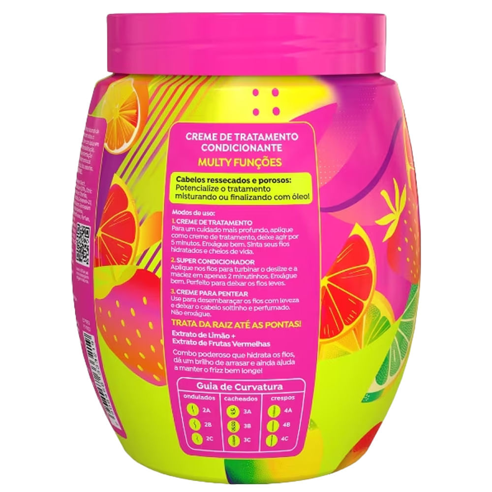 O Creme de Tratamento Cachos dos Sonhos Multy Pink Lemonade 3 em 1 oferece uma ação ultraconcentrada que recupera os fios ressecados e sem vida desde a raiz até as pontas. Sua fórmula multifuncional garante hidratação intensa e nutrição, podendo ser utilizado de três formas: tratamento intensivo, super condicionador ou creme para pentear. Com textura cremosa e fragrância cítrica refrescante, deixa os cabelos mais macios, leves, alinhados e cheios de saúde. Além disso, oferece tratamento intenso que blinda os cachos contra o frizz e garante brilho glow radiante. Benefícios:Recupera fios ressecados e sem vida.Ação 3 em 1: tratamento, condicionamento e finalização.Hidratação profunda e nutrição intensa.Brilho gloss e movimento natural.Perfume cítrico refrescante e duradouro. Principais Ativos:Extrato de Limão: ajuda a controlar a oleosidade, promove brilho e ação antioxidante.Extrato de Frutas Vermelhas:possui propriedades nutritivas e emolientes que deixam os fios mais saudáveis. Modo de usar:Tratamento Intensivo: aplique nos fios limpos, deixe agir por 5 minutos e enxágue.Super Condicionador: use após o shampoo, deixe agir por 2 minutos e enxágue.Creme para Pentear: aplique nos fios úmidos, desembarace e finalize como preferir. Não enxágue. Sobre a marca: Com mais de 15 anos de atuação no mercado, a Salon Line é uma das maiores fabricantes de cosméticos do Brasil. A marca investe constantemente em tecnologia e inovação, oferecendo produtos de alta qualidade para atender às diversas necessidades dos cabelos brasileiros.