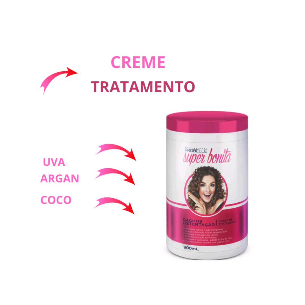 O Creme de Tratamento Cachos Ostentação Super Bonita foi especialmente desenvolvido para garantir o fortalecimento, hidratação e controle de frizz dos cabelos ondulados e cacheados do tipo 2B, 2C, 3A, 3B e 3C. Sua fórmula enriquecida com complexo de Óleos e uma combinação intensa de extratos que tratam profundamente o seu cabelo fortalecendo a barreira de umidade do fio, combatem o ressecamento com ação energizante para que a hidratação permaneça por mais tempo, garantindo assim um cabelo com movimento natural e máximo volume com sedosidade e nutrição. Esse produto ainda permite que você dê aos fios uma dose de brilho extra e mais volume nos cachos graças aos poderes dos seus óleos.