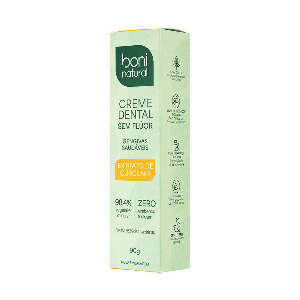 Creme Dental Boni Natural Gengivas Saudáveis Extrato de Cúrcuma Sem Flúor 90g
