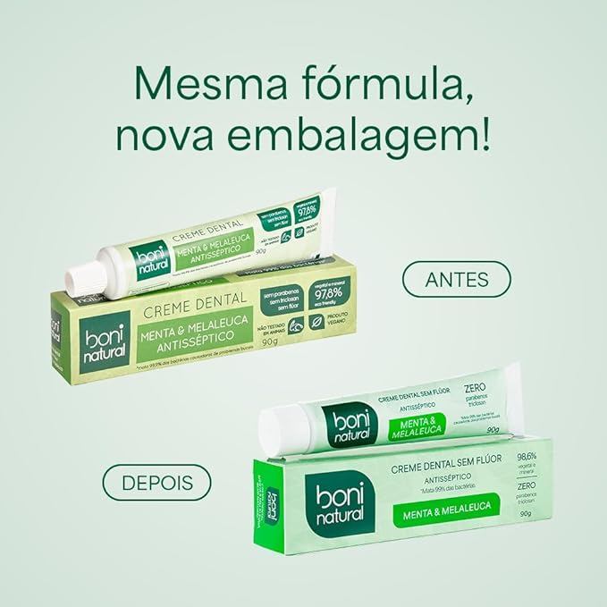 Creme Dental Boni Natural Menta Melaleuca Sem Flúor 90g