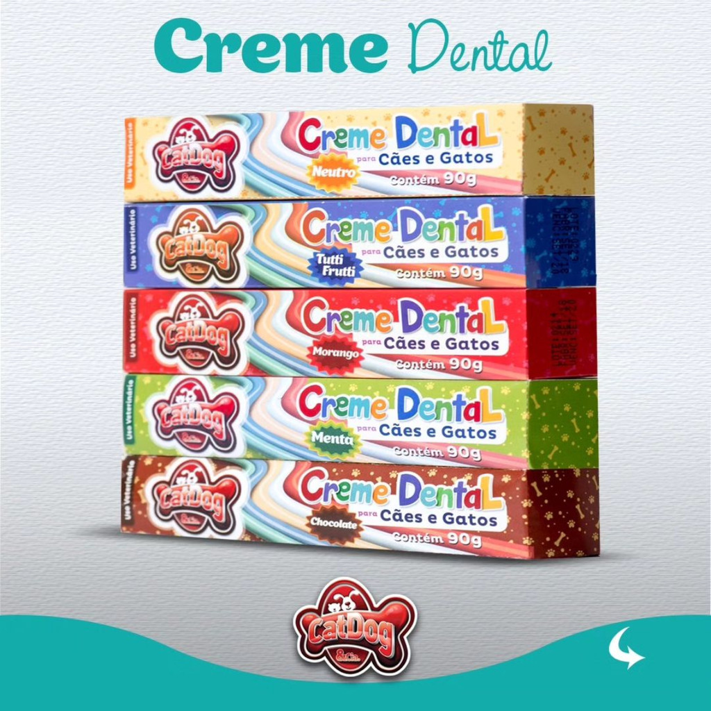Creme Dental Chocolate CatDog & Cia para Cães e Gatos - 90g - Aroma de chocolate; - Boca mais saudável; - Diminui o mau hálito; - Ajuda a clarear os dentes. Detalhes Elaborado exclusivamente para uso dos pets o Creme Dental Chocolate CatDog & Cia para Cães e Gatos somado a escovação, ajuda a reduzir o mau hálito, clareia os dentes e deixa a boca do seu amigo ainda mais saudável. Dicas Especiais Não precisa enxaguar o Creme Dental Chocolate CatDog & Cia para Cães e Gatos, inclusive pode ser engolido pelos pets pois não contém sabões como os cremes dentais dos humanos. Indicação: Cachorros, Gatos Porte/Raça: Raças Pequenas, Raças Médias, Raças Grandes Idade: Filhotes, Adultos, Idosos Composição: Carbonato de cálcio, bicarbonato de sódio Apresentação: 90 g