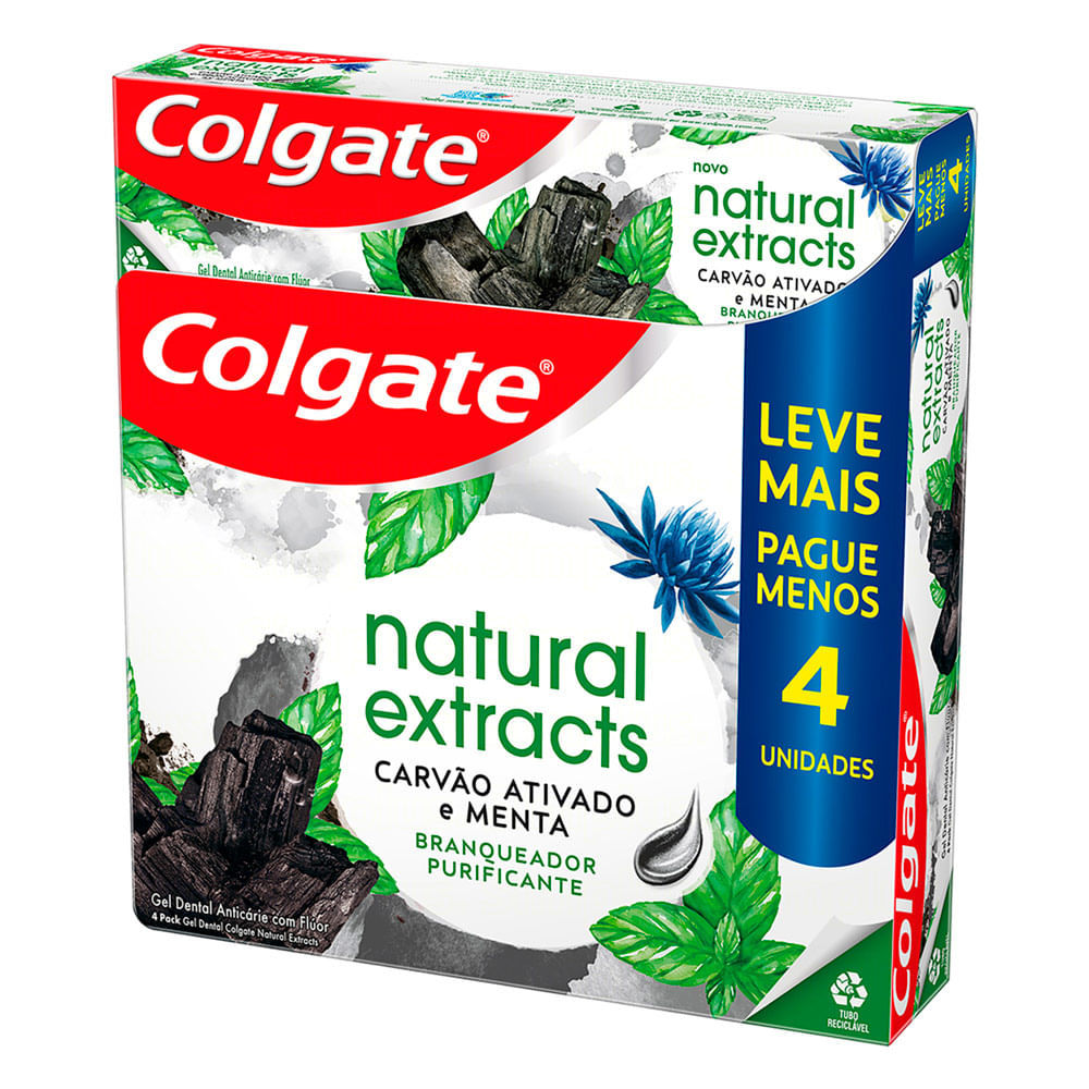 Creme Dental Colgate Natural Extracts Carvão Ativado e Menta Branqueador Purificante com 4 Unidades de 90g cada
