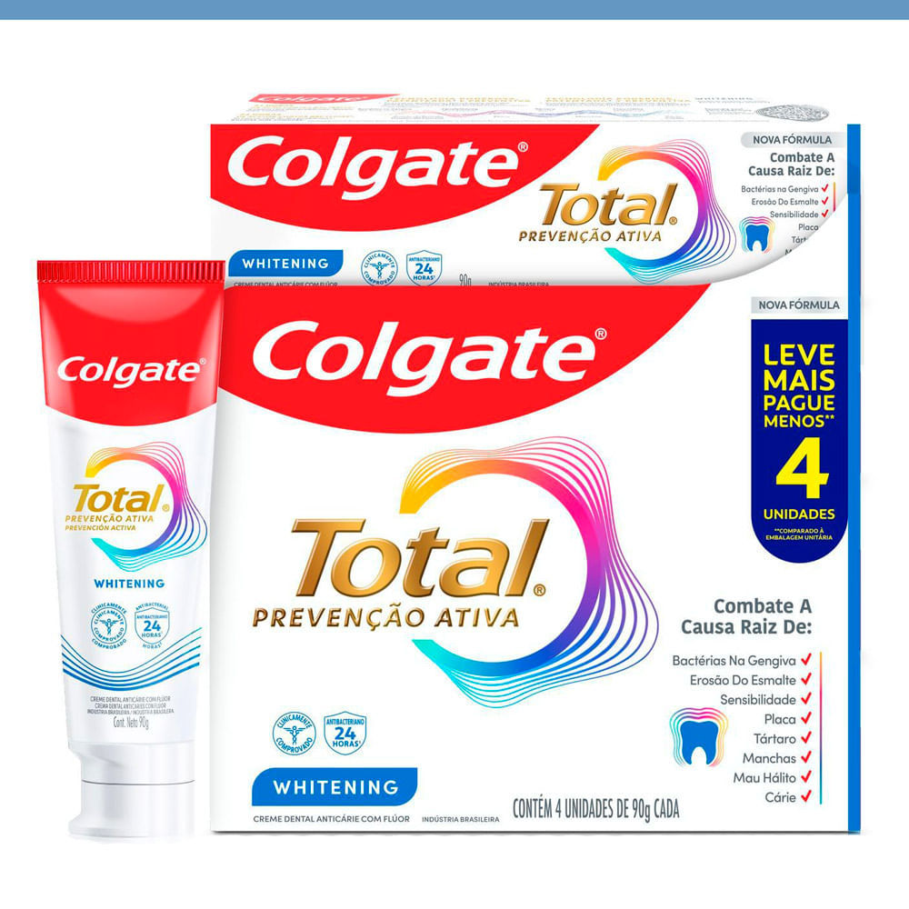 Creme Dental Colgate Total Prevenção Ativa Whitening 4 Unidades de 90g cada