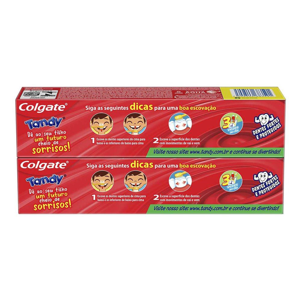 A pasta de dente infantil Colgate Tandy foi desenvolvida especialmente para crianças e oferece proteção anticárie. Sua fórmula clinicamente comprovada, contém flúor ativo e baixa abrasividade que fortalece o esmalte dos dentes deixando-os fortes e saudáveis. O delicioso sabor suave de morango agrada as crianças e deixa seu filho com um hálito refrescante Benefícios: Contém 1110ppm de flúor ativo, que ajuda a proteger os dentinhos das crianças das cáries. Sua fórmula ajuda a proteger o esmalte dos dentes, porque possui baixa abrasividade O delicioso sabor de morango agrada as crianças e ajuda a criar o hábito da escovação O interior da embalagem contém atividades para entreter as crianças, deixando a hora da escovação mais divertida Não contém açúcar