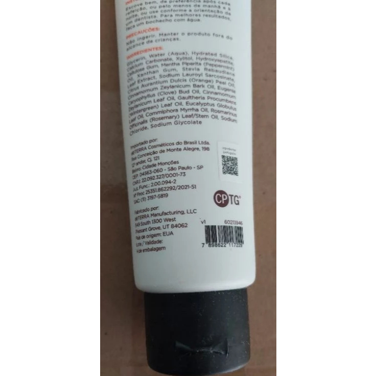 ** PRODUTO COM NOTA FISCAL ** FÓRMULA EXCLUSIVA NO BRASIL O Creme Dental Clareador Natural sem flúor On Guard combina os efeitos protetores do mix de óleos essenciais On Guard com outros ingredientes naturais que ajudam a limpar, reduzir a placa e clarear os dentes com agentes suaves de polimento. A hidroxiapatita de cálcio ajuda a manter os dentes com um aspecto limpo e saudável. O adoçante natural xilitol tem um gosto excelente e ajuda a manter os dentes e gengivas limpos. A silica hidratada é um agente abrasivo natural que ajuda a remover manchas e placa, mas é suave o suficiente para não danificar o esmalte dos dentes.