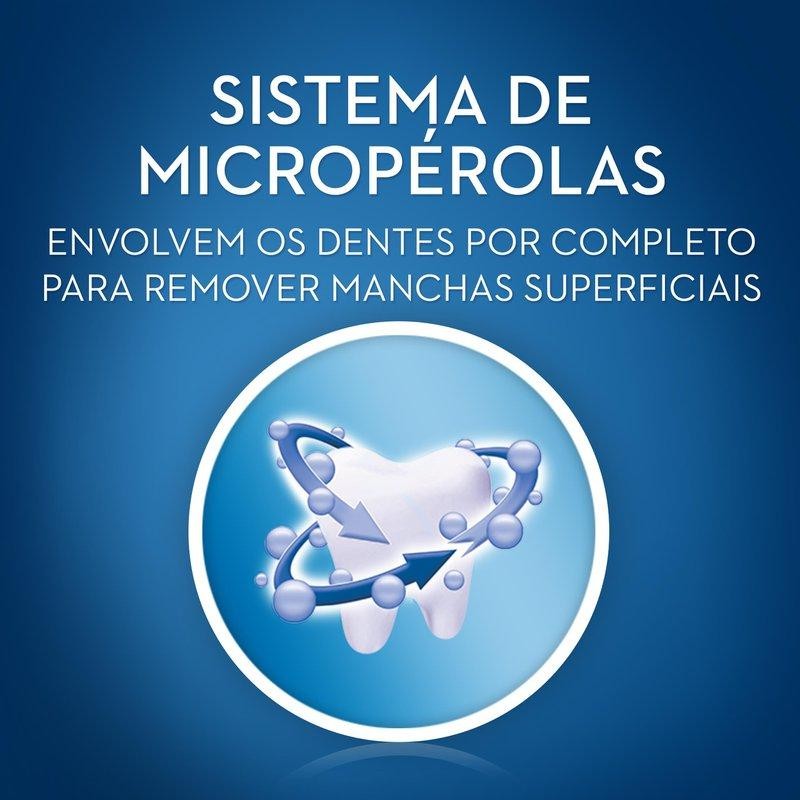 Oral-B 3D White branqueia os dentes: remove até 80% das manchas superficiais em apenas 2 semanas. Seus dentes mais brancos* e protegidos. -Possui um exclusivo sistema de micropérolas, que envolvem os dentes por completo para remover manchas superficiais e polir os dentes. -Tem espuma de ação delicada para limpar áreas de difícil acesso. -Não causa dano ao esmalte. -Ajuda a prevenir a cárie, remover a placa e refrescar o hálito. -O creme dental Oral-B 3D White branqueia os dentes em 3 dimensões e remove até 80% das manchas em apenas 2 semanas.