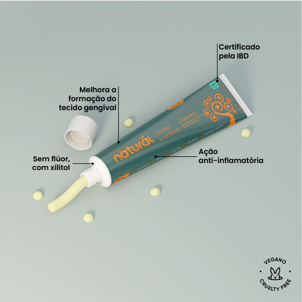 Creme Dental Orgânico Natural com Extratos de Cúrcuma Cravo e Melaleuca 80g
