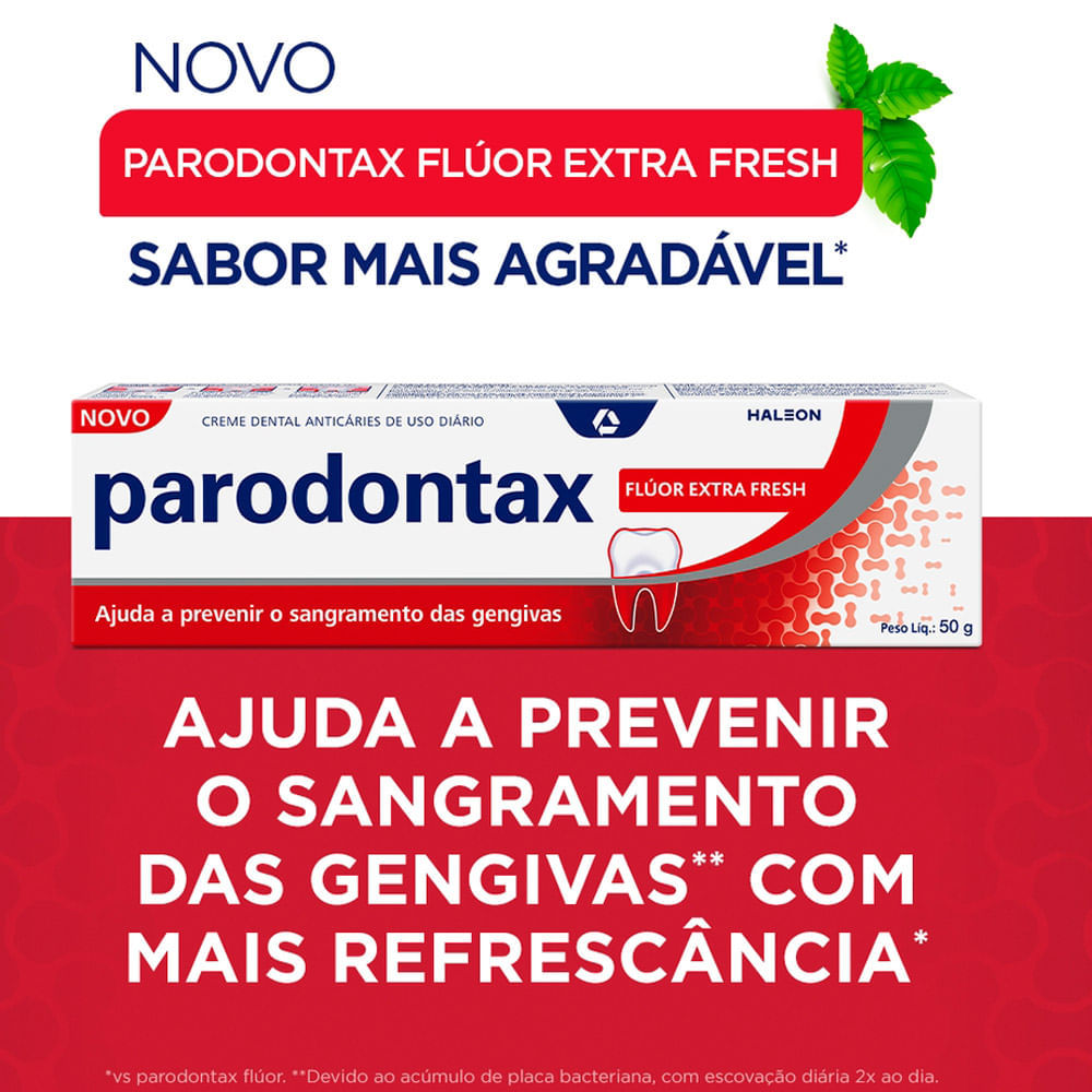 Creme Dental Parodontax Flúor Extra Fresh 50g O Creme Dental Parodontax Original ajuda a prevenir o sangramento das gengivas.4x mais eficaz na remoção da causa do sangramento da gengiva.Na remoção da