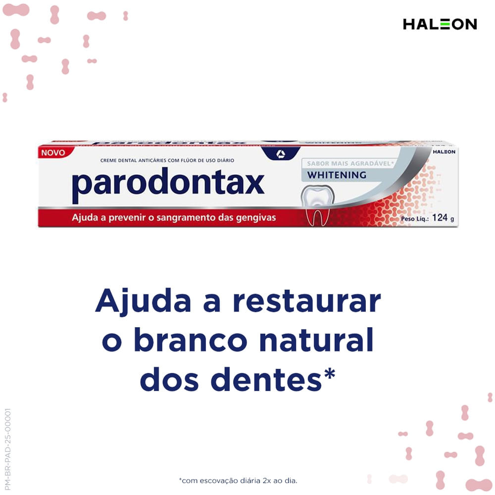 Creme Dental Parodontax Whitening - 124g Descubra a eficácia do Creme Dental Parodontax Whitening, projetado para oferecer um sorriso mais branco e saudável. Com 124g de fórmula poderosa, este creme d