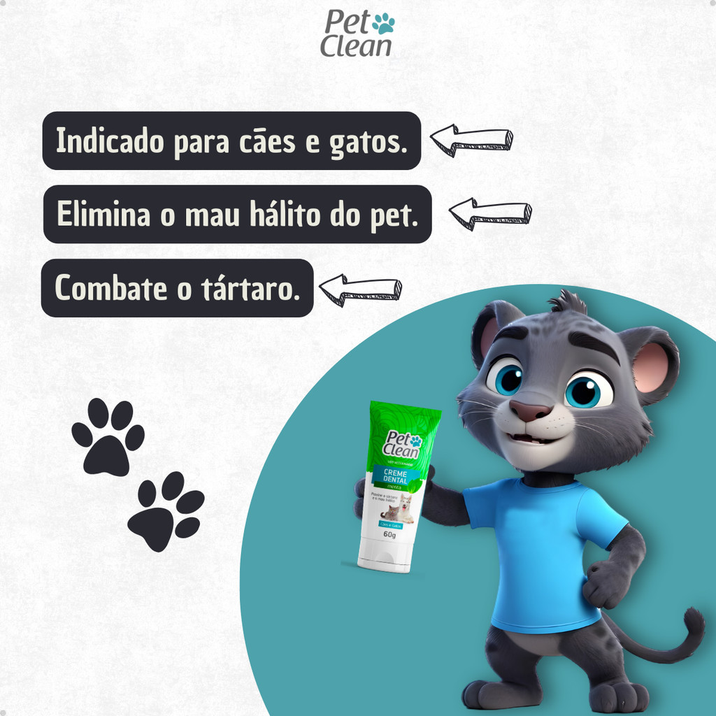 Creme Dental Pasta de Dente para Cachorro e Gato Pet Shop Pet Clean - 60g