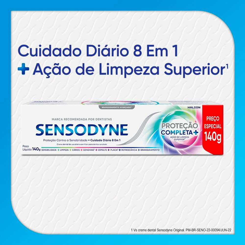 Creme Dental Sensodyne Proteção Completa + Ação de Limpeza 140g Sensodyne Proteção Completa + éum creme dental de uso diário que promove múltiplos benefícios para a saúde da boca juntamente com a prot