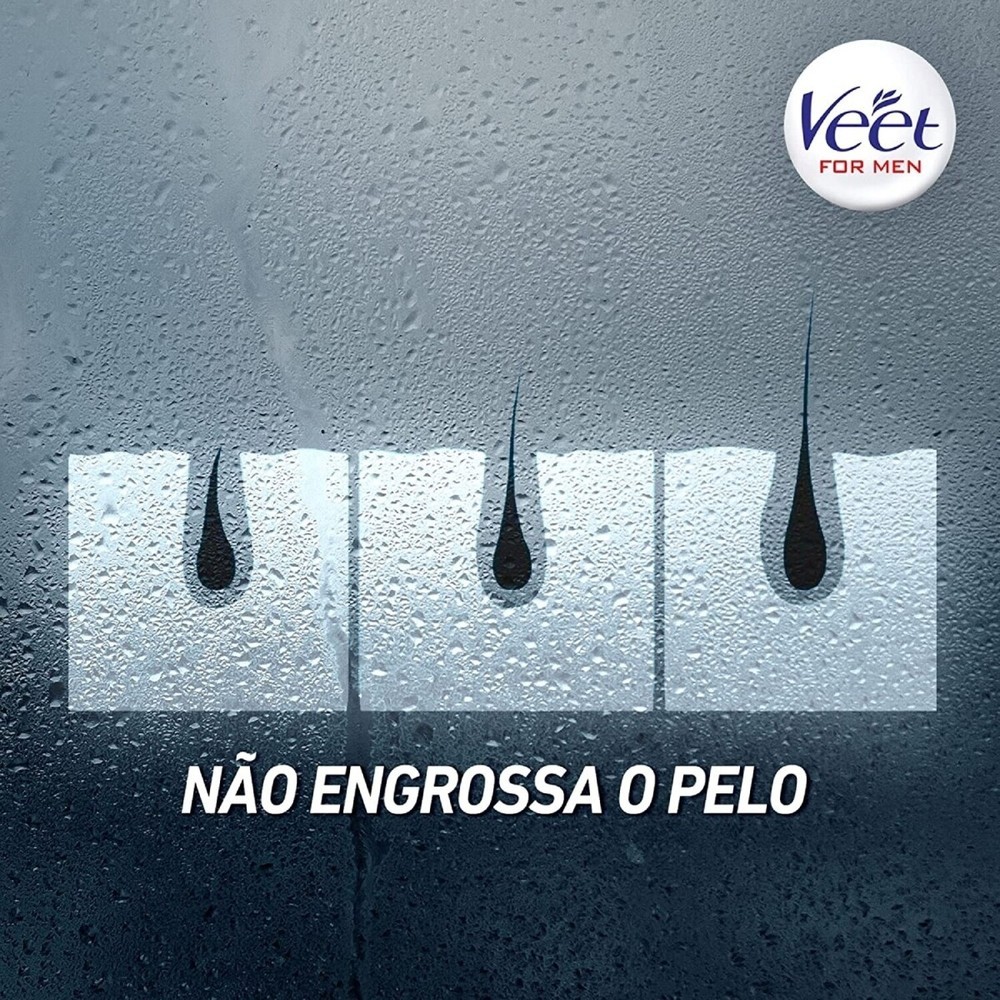 O Creme Depilatório Corporal Veet For Men proporciona uma depilação sem dor, fácil, rápida e com resultados duas vezes mais duradouros do que a depilação com lâminas, agindo próximo à raiz, eliminando mesmo os pelos mais curtos. Desenvolvido especialmente para a pele masculina e indicado para depilar peito, costas, braços e pernas.