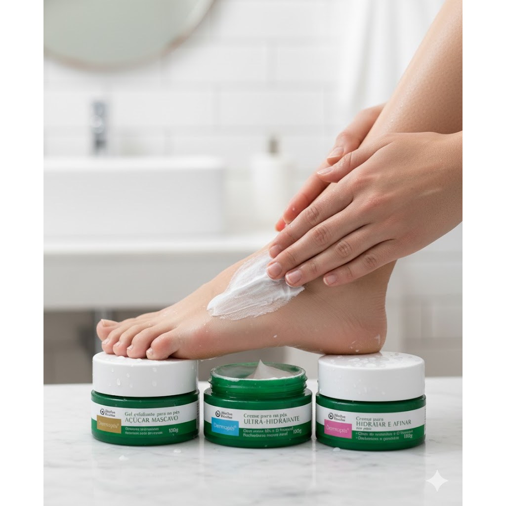 Linha Dermopés Abelha Rainha – O Tratamento Profundo para Seus Pés Recupere a leveza e a suavidade dos seus pés com a linha Dermopés, especialista em transformar peles ásperas e ressecadas em superfícies macias e renovadas. Escolha entre os itens individuais ou o Kit Completo para um verdadeiro "spa dos pés" em casa. Conheça o Poder de Cada Produto (100g): Gel Esfoliante com Açúcar Mascavo: O primeiro passo para a renovação. Remove impurezas e células mortas de forma suave, preparando a pele para absorver melhor a hidratação. Deixa os pés lisos e com frescor imediato. Creme Hidrata e Afina: Com Óleo de Amêndoas e D-Pantenol, este creme é o segredo para reduzir a espessura de áreas endurecidas. Ele combate calosidades e asperezas, promovendo uma pele visivelmente mais fina e uniforme. Creme Ultra Hidratante: O socorro imediato para rachaduras e ressecamento extremo. Cria uma película protetora que retém a umidade e nutre profundamente, devolvendo o conforto que seus pés merecem. Benefícios que Fazem a Diferença: Pés de Seda: Adeus à textura áspera e ao toque seco; sinta a maciez desde o primeiro uso. Ação Preventiva: Evita o surgimento de novas rachaduras e mantém a pele elástica. Renovação Celular: A combinação de esfoliação e hidratação estimula o nascimento de uma pele mais saudável. Cuidado Especializado: Ativos selecionados que tratam desde o calcanhar até as cutículas. Por que apostar no Dermopés? Diferente de hidratantes comuns, a linha Dermopés foi formulada para a pele mais espessa dos pés. É o cuidado ideal para quem usa calçados abertos, pratica esportes ou simplesmente não abre mão de pés impecáveis e bem cuidados. Opções Disponíveis: Unitário: Escolha entre Esfoliante, Hidrata e Afina ou Ultra Hidratante. Combo Renovação Total: 1 unidade de cada para um tratamento completo.