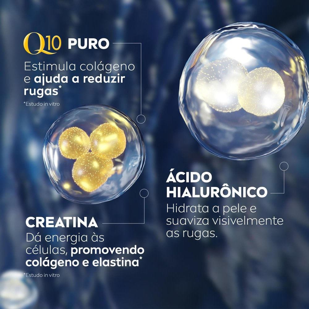 *Produto Original* *Atenção:* Venda exclusiva para pessoa física. Pedidos com CNPJ serão cancelados. A coenzima Q10 e a Creatina são ativos poderosos encontrados naturalmente na pele. C/a idade seus níveis diminuem, deixando a pele com menos energia para renovar-se. C/o passar do tempo a pele fica mais propensa a rugas e sinais de idade. NIVEA Q10 plus Antissinais combina a exclusiva Tecnologia MaxCreatina Ativa e Q10, em uma poderosa fórmula que repõe e aumenta os níveis desses ativos* nas camadas mais profundas da pele, estimulando a produção de energia e atuando efetivamente contra os sinais da idade. * Teste in vitro -Reduz rugas e linhas de expressão a partir de 2 semanas. -Após 4 semanas, redução da profundidade das rugas. -Proporciona hidratação intensiva e regula o sistema de hidratação natural da pele. -Adequado para peles sensíveis.