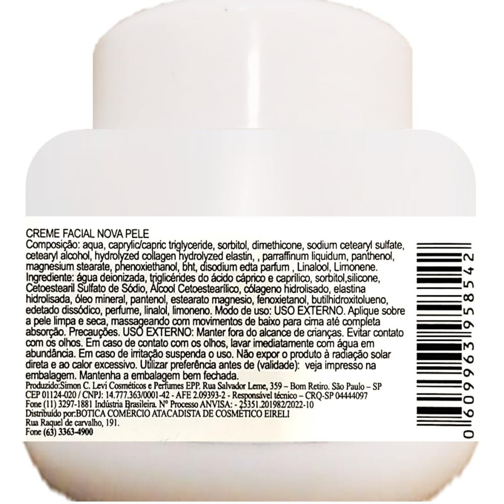 Creme Facial NOVA PELE, é um produto natural que deixa sua pele macia e hidratada. Sua fórmula possui textura leve e livre de óleos, contém colágeno e elastina que dá mais elasticidade a pele prevenindo o aparecimento de rugas e proporcionando uma pele mais jovem em qualquer idade. Modo de usar: Com a pele limpa, aplique uma pequena quantidade do produto e espalhe no rosto em movimentos circulares até absorção completa. Seu uso deve ser de no mínimo 45 dias de uso noturno. É indispensável lavar o rosto pela manhã e utilizar o protetor solar ao longo do dia.