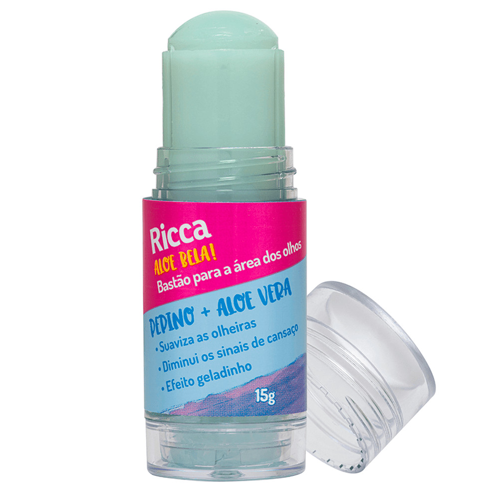 O Bastão para os olhos Aloe Bela! Ricca é o seu mais novo aliado no tratamento de beleza com ação multifuncional! Isso porque ele hidrata, refresca (efeito geladinho) e melhora a microcirculação da área dos olhos. Além disso, ajuda a suavizar os sinais visíveis de cansaço da pele, como as olheiras, manchas escuras, rugas, sensibilidade e ao mesmo tempo aumenta o viço e luminosidade da pele. Ele possui ativos que são ricos em vitamina C e têm propriedades antioxidantes, que ajudam a reduzir os sinais de estresse da pele. Compacto e facinho de aplicar, também promove um resultado na hora, sensação de frescor e bem-estar! Benefícios: - Em apenas 28 dias de uso você já perceberá: - Diminuição das olheiras; - Diminuição dos sinais de cansaço; - Rugas menos visíveis; - Melhora na luminosidade da pele; - Melhora na elasticidade da pele.