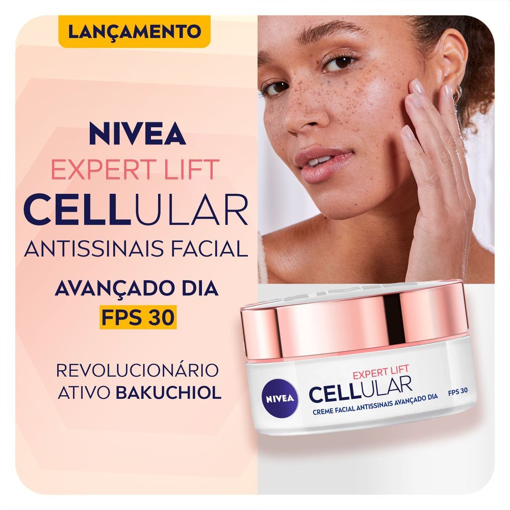 NIVEA Creme Facial Antissinais Cellular Lift Dia FPS 30 50ml O que é? Creme facial antissinais que possui uma poderosa combinação de ativos anti-idade, que habitam nos níveis celulares mais profundos
