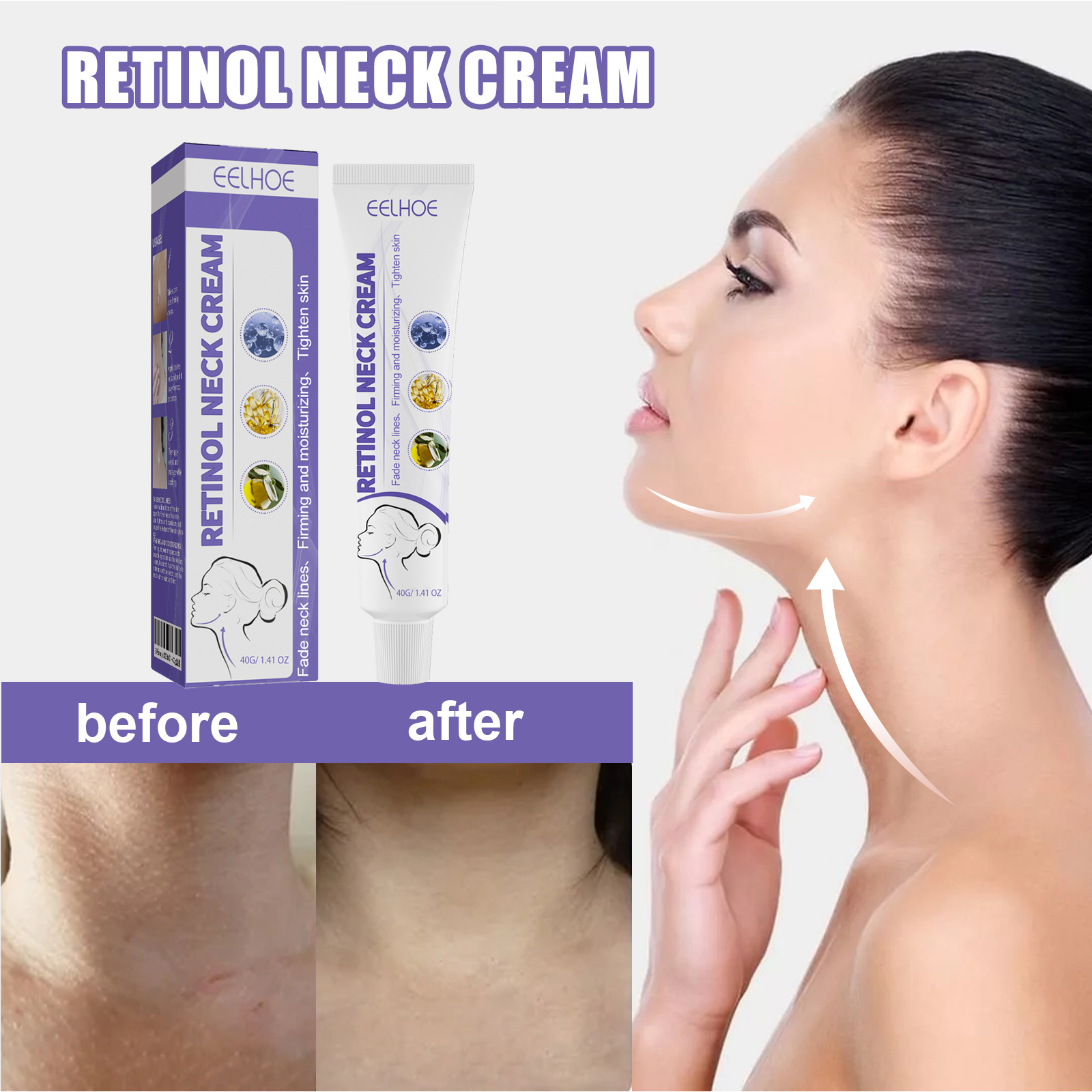 Creme Firmador E Antienvelhecimento Para Pescoço 40G | Escultura De Mandíbula , Redutor De Queixo Duplo Corretor De Linh