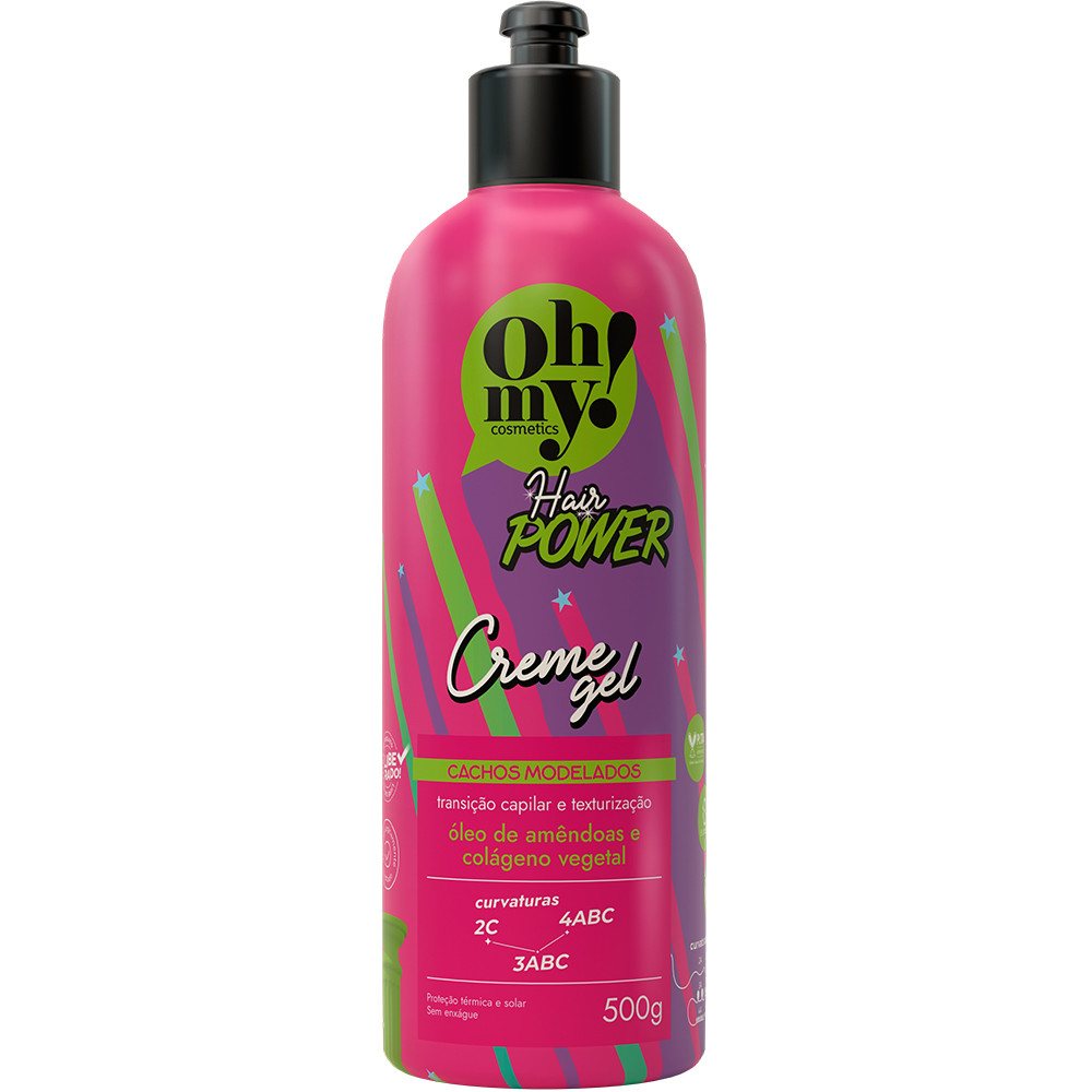 > Importante: Informamos que a Oh My! mudou suas embalagens e os nomes de algumas linhas recentemente. Por isso temos alguns produtos diferentes nas fotos do anúncio, por estarmos atualizando nosso estoque conforme recebemos os produtos do fabricante. Obrigada! Creme Gel Hair Power Indicação: > Pra cabelos cacheados, crespos e em transição > Curvaturas 2C – 3ABC – 4ABC > Cachos modelados > Transição capilar e texturização Modo de usar: com o cabelo limpo, desembaraçado e úmido, aplique o creme gel mecha a mecha, deslizando com as mãos do meio pra baixo, e modele como desejar. Deixe secar naturalmente ou, pra mais volume, abra os cachos ou use o difusor. Especificações: > Proteção térmica > Proteção solar > Sem enxágue > Liberado! Livre de sulfato e petrolato! Benefícios: > O Creme gel traz uma incrível fórmula com óleo de amêndoas e colágeno vegetal, que controlam o frizz e ajudam na definição dos cachos. Ele também auxilia durante a transição capilar, diminuindo o contraste entre as texturas da raiz e das pontas. Com toque suave e condicionante, o creme gel não pesa nadinha. Seu cabelo preparado pra brilhar, livre, leve e solto! O que os nossos ativos fazem: > Óleo de amêndoas: com propriedade emoliente e rico em vitamina E, o óleo de amêndoas ajuda na recuperação dos fios danificados, combatendo as pontas ressecadas, além de nutrir e dar brilho às madeixas! > Colágeno vegetal: garante elasticidade aos fios e facilita muito na hora de pentear! Além disso, promove um cabelo hidratado, sem frizz, com definição e balanço. Selos: Selo “Eu Reciclo” Selo “Certificado Vegano” Selo “Livre de testes, cheios de amor” Anúncio: Creme Gel Hair Power 500ml Oh My! Sachês Sortidos