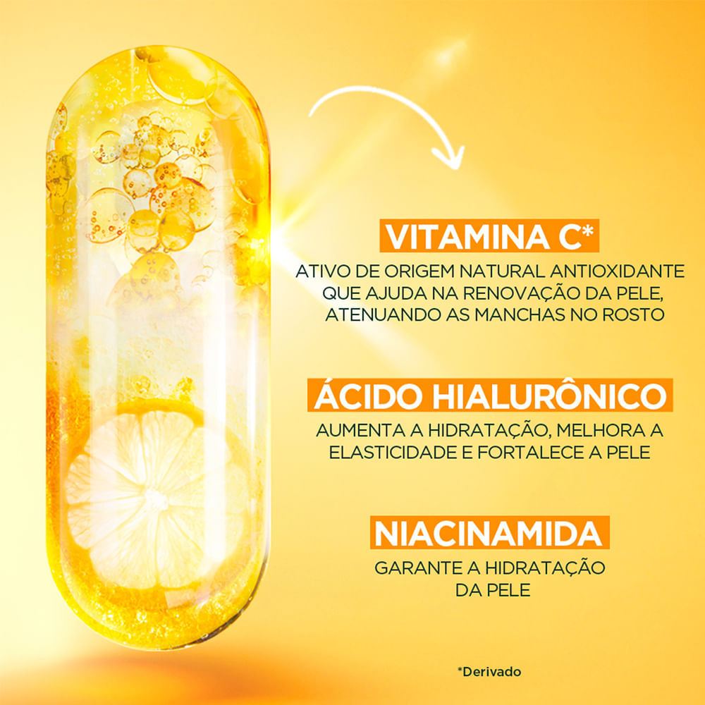 Transforme sua rotina de cuidados com o Creme Hidratante Facial Garnier Antimanchas Vitamina C Toque Seco. Sua fórmula enriquecida com vitamina C auxilia no combate e prevenção de manchas, promovendo uma pele mais uniforme e iluminada. O toque seco garante até 8 horas de frescor, sem deixar a pele oleosa, ideal para quem tem pele mista ou oleosa. Sua textura leve oferece hidratação por até 48 horas, proporcionando uma pele macia, radiante e bem cuidada ao longo do dia. Benefícios: - Hidratação duradoura por 48 horas; - Toque seco por até 8 horas, ideal para peles mistas e oleosas; - Combate e previne manchas, deixando a pele mais uniforme e iluminada; - Textura leve e de rápida absorção. Modo de usar: - Limpe a pele com um sabonete adequado ao seu tipo de pele. - Espere alguns minutos até que a pele esteja seca. - Aplique o hidratante no rosto. - Massageie suavemente até que o produto seja absorvido. Sobre a marca: Garnier é uma marca internacional de cuidados para a pele e para o cabelo. Produtos concebidos para satisfazer as necessidades de homens e mulheres de todo o mundo. Soluções de beleza inovadoras e com preços acessíveis. Uma beleza verdadeiramente moderna, natural e saudável. Garnier não vai deixar você esconder seu verdadeiro eu. Produzimos produtos de beleza simples e com ingredientes naturais que realçam uma pele e um cabelo resplandecentes.