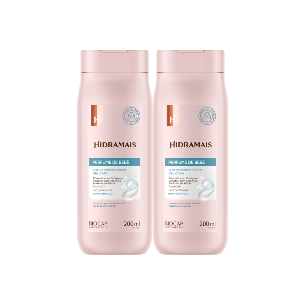 O que é ? A Loção Desodorante Perfume de Bebê Hidramais, possui formulação leve, não oleosa e é enriquecida com Colágeno Vegetal. Tem ação desodorante e hidratante. Deixa a pele com toque suave e levemente perfumada. O que ele faz? Desodoriza, hidrata e deixa a pele suavemente perfumada. Como usar? Permitido o uso em gestante. Coloque uma pequena quantidade da loção nas mãos e espalhe pelo corpo, até a absorção completa do produto. Use diariamente para melhores resultados. Protocolo OBSERVAÇÕES IMPORTANTES Mantenha o produto fora do alcance de crianças. Evite o contato com os olhos. Em caso de irritação, suspenda imediatamente o uso e procure um médico. Proibido para uso infantil. Tamanho 200ml