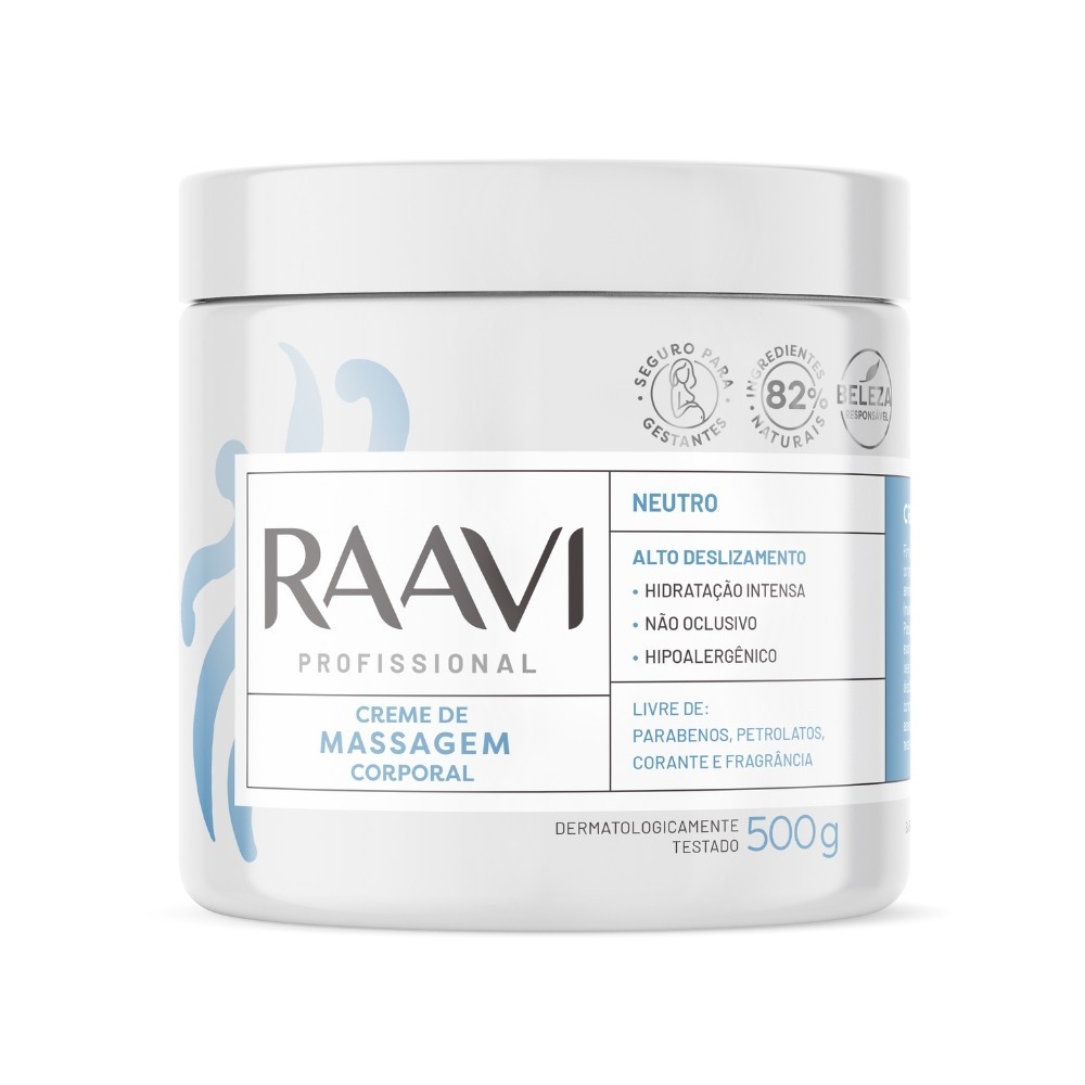 Oii, é um prazer ter você aqui! Com sua textura rica e emoliente, ele é perfeito para massagens relaxantes e terapêuticas, proporcionando uma sensação imediata de conforto e suavidade. Enriquecido com ativos hidratantes e nutritivos, este creme promove a hidratação profunda e a revitalização da pele, deixando-a macia e sedosa. Ideal para profissionais de estética e para uso em casa, ele é o aliado perfeito para cuidar do seu corpo. O que é: - Creme de Massagem Neutro Raavi 500g. - Marca: Raavi. - Corporal. - Seguro para gestantes. - Hipoalergênico. - Não testado em animais. - Dermatologicamente testado. - Livre de Parabenos, Petrolatos e Corantes. O que tem: - Emolientes Vegetais. O que faz: - Hidratação intensa. - Ação desodorante. Indicado para: - Todos os tipos de pele (uso exclusivamente corporal). Como usar: - Espalhe sobre a pele previamente limpa e seca, nas áreas desejadas e inicie a técnica de massagem de sua preferência. - Massageie com as palmas das mãos, realizando técnicas de massagem de sua preferência. Transforme suas sessões de massagem em uma experiência única de relaxamento e cuidado. O Creme de Massagem Corporal Raavi é o toque de luxo que sua pele merece! Surgiu alguma dúvida? Entre em contato com a gente! Boas Compras :)