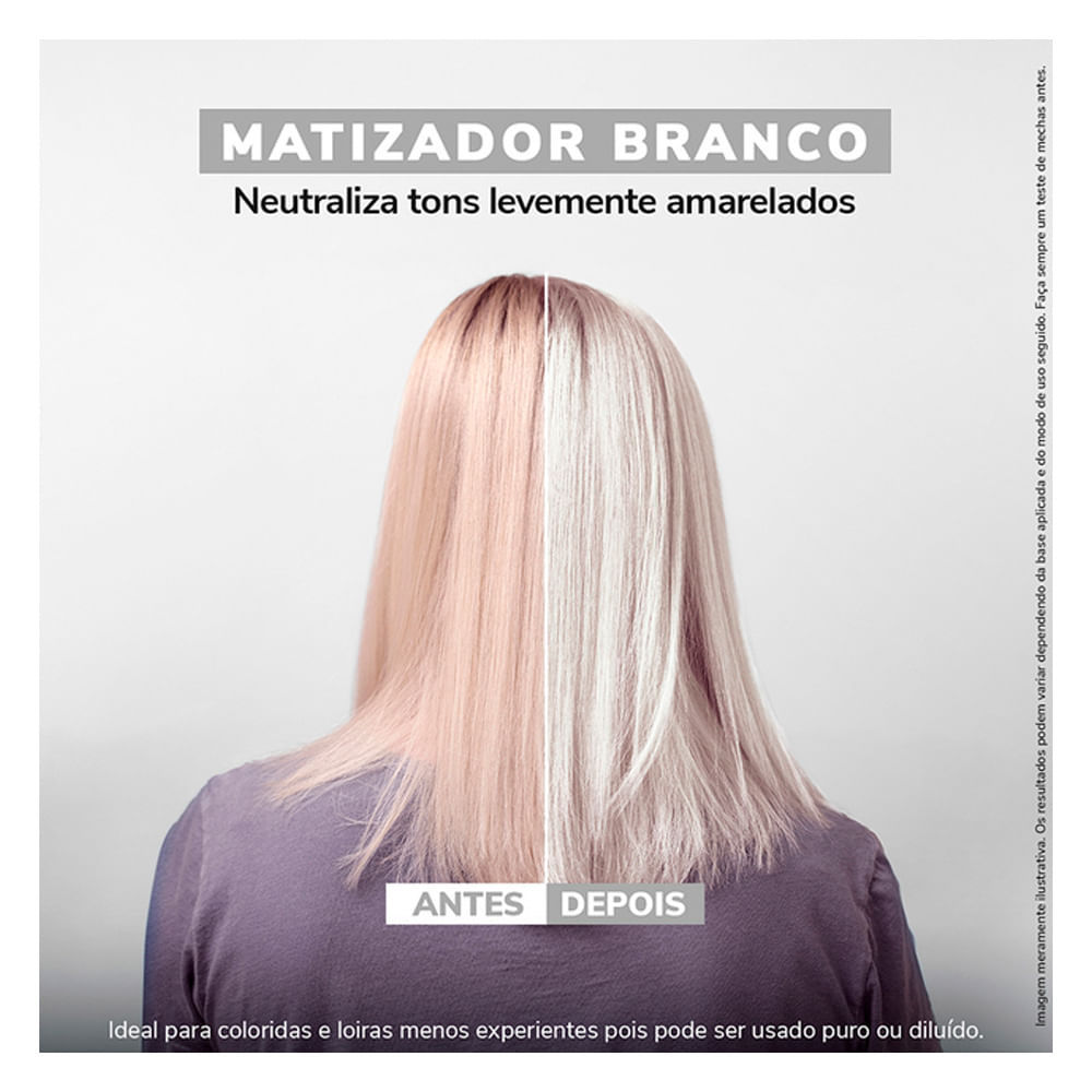 O Creme Matizador Kamaleão Color Tubarão branco foi especialmente desenvolvido para ser utilizado com o Diluidor Arco Íris na proporção 1:9, ou seja, 1 colher de Matizador para 9 colheres de Diluidor. Garante efeito platinado. Possui fórmula super concentrada, sem parafina, óleo mineral, parabenos e derivados de animais. É indicado a realização do teste de mechas antes da aplicação. Modo de Uso: Diluir o produto na proporção indicada. Aplicar no cabelo úmido de 1 a 3 minutos, observando a pigmentação do produto. Se muito diluído o tempo de pausa no cabelo é maior para o efeito pretendido. ATENÇÃO: Caso ocorra uma super pigmentação deve-se lavar o cabelo com o Shampoo Arco Íris. Em casos extremos, recomendamos passar o Shampoo Arco Íris nos fios e deixar em touca por 60 minutos. Precauções: Uso externo. Pode causar reação alérgica. Havendo irritação, suspender o uso e procurar orientação médica. Não usar nos cílios ou sobrancelhas. Não aplicar no couro cabeludo ferido ou lesionado. Manter fora do alcance de crianças. Conservar em local fresco, ventilado e ao abrigo da luz. Em caso de contato acidental com os olhos, enxaguar imediatamente com água em abundância.