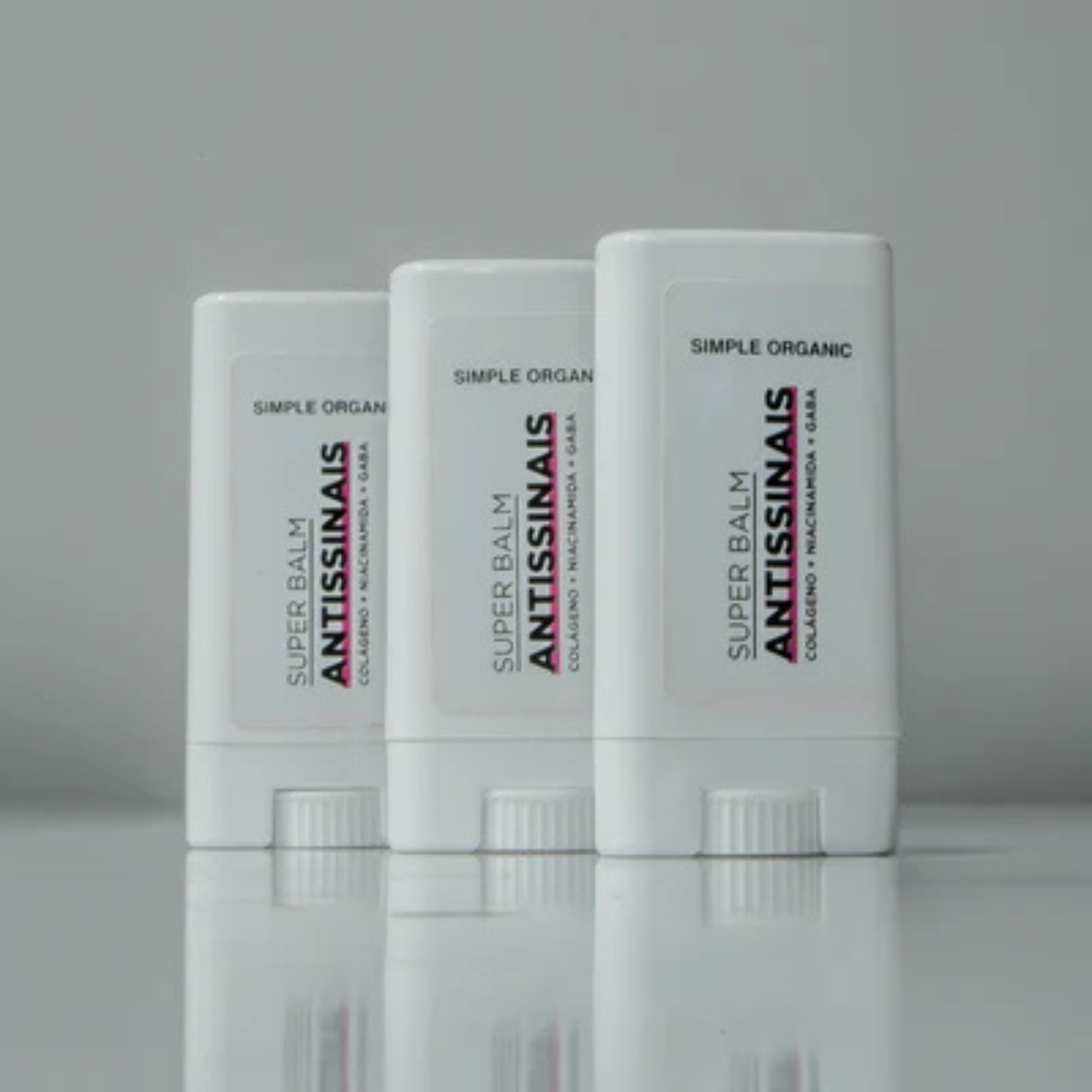 A Simple Organic é referência em clean beauty no Brasil, com produtos de high performance, ativos premium e tecnologia inovadora. Suas fórmulas são veganas, cruelty-free, sustentáveis e clinicamente testadas, garantindo resultados reais e seguros. Com eficácia comprovada por testes clínicos e recomendada por dermatologistas, a Simple Organic entrega muito mais do que beleza: oferece tratamentos eficazes, inovadores e responsáveis que cuidam da sua pele e do planeta. Sobre o produto: SUPER BALM ANTISSINAIS A marca conhecida pelos sticks acaba de lançar mais uma inovação para a sua rotina de skincare: o Super Balm Antissinais. Perfeito para quem deseja um produto multifuncional de alta performance, o Super Balm Antissinais reduz linhas de expressão, hidrata profundamente, aumenta a elasticidade e a firmeza da pele. Composto por ativos que a gente já conhece e ama, como Gaba, Niacinamida e Ácido Hialurônico, o Super Balm Antissinais também é rico em Colágeno Vegano Nanoencapsulado, formando o stick perfeito para quem deseja combater a flacidez, restaurar o volume facial e atenuar os sinais do tempo. Prático e multifuncional, o Super Balm Antissinais possui textura hidratante que desliza facilmente na pele, sendo ideal para usar em conjunto das nossas Soluções de alta performance e potencializar os resultados. Com tecnologia de nanoencapsulamento de alta performance, nosso Colágeno é 100% vegano, produzido por biofermentação de leveduras, formando um blend poderoso com o Ácido Hialurônico. Através dela, garantimos a melhor permeação dos ativos na pele, o Colágeno preenche os tecidos, melhora a firmeza e a elasticidade, reduz os poros e linhas de expressão ao mesmo tempo que repara os tecidos danificados com o passar dos anos, mantendo a integridade da pele. Ao contrário dos ativos em sua forma livre, o Colágeno Vegano nanoencapsulado - junto ao Ácido Hialurônico - supera a camada do estrato córneo, atinge a epiderme e proporciona os benefícios dos ativos na máxima performance de forma segura, biocompatível e biodegradável. Volume: 12g Quais são os ingredientes? Ativos: Colágeno Vegano, Gaba, Niacinamida, Ácido Hialurônico, BBA Orgânico. Composição: Caprylic/Capric Triglyceride, Aqua, Helianthus Annuus Seed Cera, Niacinamide, Coco-Caprylate/Caprate, Oryza Sativa Cera, Silica, C10-18 Triglycerides, Pentaclethra Macroloba Seed Oil, Polyglyceryl-6 Polyhydroxystearate, Polyglyceryl-6 Polyricinoleate, Triheptanoin, Sodium Chloride, Glycerin, Glyceryl Caprylate, Tocopherol, Parfum*, Polyglycerin-6, Glycine Soja Oil, Aminobutyric Acid, Ascorbyl Palmitate, Helianthus Annuus Seed Oil, Vanillin, Algin, Sodium Benzoate, Potassium Sorbate, Coumarin, Calcium Citrate, Sodium Hyaluronate, Collagen, Mannose, Glucose. *Origem Natural. Composição (português): Triglicerídeo Caprílico/Cáprico, Água, Cera da Semente de Girassol, Nicotinamida, Coco-Caprilato/Caprato, Cera de Arroz, Silica, Triglicerídeos C10-18, Óleo da Semente de Pracaxi, Polihidroxiestearato de Poliglicerila-6, Polirricinoleato de Poliglicerila-6, Tri-Heptanoína, Cloreto de Sódio, Glicerol, Caprilato de Glicerila, Tocoferol, Perfume*, Poliglicerina-6, Óleo de Soja, Ácido Gamaminobutírico, Palmitato de Ascorbila, Óleo da Semente de Girassol, Vanilina, Alginato de Sódio, Benzoato de Sódio, Sorbato de Potássio, Cumarina, Citrato de Cálcio, Hialuronato de Sódio, Colágeno, Dextromanose, Glicose. *Origem Natural. Como usar: Aplique diretamente sobre o rosto, ou na área desejada. Massageie e deixe a pele absorver o produto. Onde usar: No rosto. Quando usar: Diariamente, na rotina da manhã e da noite. Tipo de pele: Variados tipos de pele, especialmente as secas, ressecadas e maduras. Acabamento: Pele macia e hidratada. Textura: Balm hidratante. Precauções: Uso externo. Manter longe do alcance de crianças. Evitar contato com os olhos. Armazenar em local seco, arejado, ao abrigo da luz e outras fontes de calor. Em caso de irritação, suspenda o uso e, se sinais persistirem, procure um médico. Utilize protetor solar.
