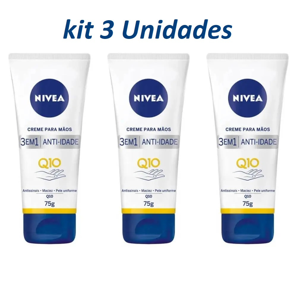 Creme Para Mãos Nivea 3 em 1 Anti-Idade Q10 75g - 3 Unidades