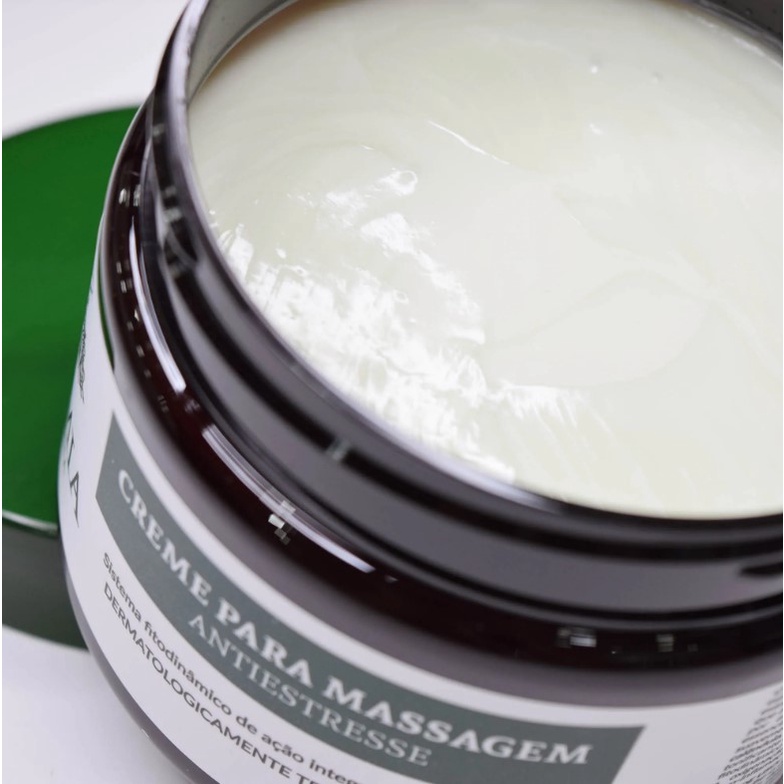 CREME PARA MASSAGEM ANTIESTRESSE ALKYMIA DI GRANDHA O Creme para Massagem Antiestresse de Alkymia di Grandha foi estrategicamente desenvolvido para prevenir os efeitos e o desconforto do estresse. Sua formulação propõe uma matriz de potencial anti-inflamatório que atua em diferentes níveis da pele. Age de forma sistêmica e integrada, por associação de diferentes componentes fitoterápicos. Os óleos essenciais de bergamota, eucalipto globulus, cânfora e tomilho, são suavemente carreados pela sinergia de óleos vegetais de arnica e calêndula, que se conectam com extratos glicólicos de ação calmante e tonificante do sistema nervoso e muscular. Fórmula baseada num sistema fitodinâmico de ação integrada, que melhora o sono, promove relaxamento e oxigenação das estruturas musculares e nervosas, previne as micro-inflamações da pele e prepara o momento do descanso. MODO DE USO Aplique o Creme para Massagem Antiestresse sobre a pele e espalhe-o com movimentos inicialmente leves e suaves. Explore a capacidade de deslizamento da emulsão, executando os movimentos adequados para obtenção do melhor resultado. Não enxágue. Repita a aplicação quantas vezes achar necessário. Ideal para uso antes de dormir. INFORMAÇÕES IMPORTANTES Sistema fitodinâmico de ação integrada. Dermatologicamente testado. Com óleos essenciais de bergamota, eucalipto globulus, cânfora e tomilho. Com óleos vegetais de arnica e calêndula.