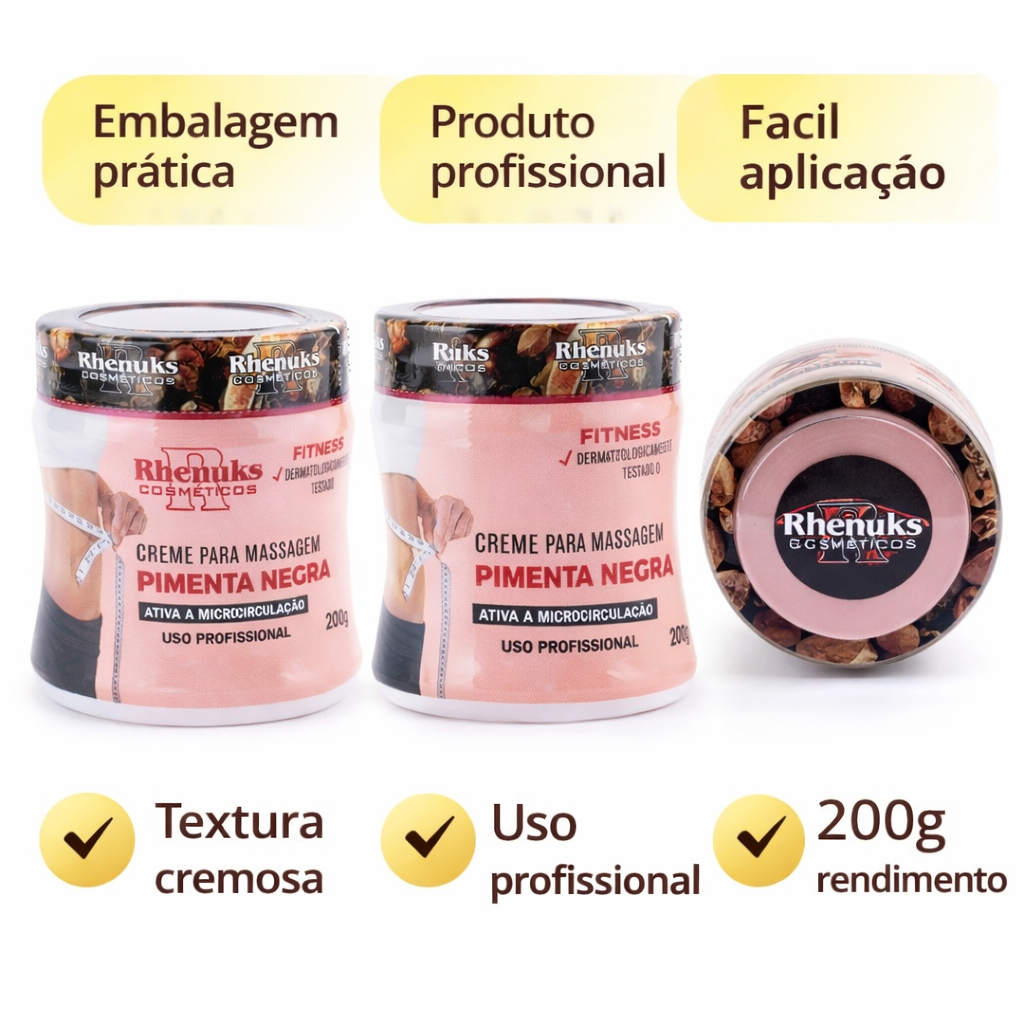 Creme Para Massagem Pimenta Negra Rhenuks 200g Ativa Microcirculação Uso Profissional Dermatologicamente Testado Creme E