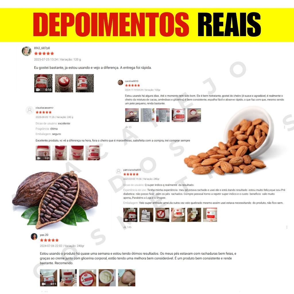 Adeus às Rachaduras e Ressecamentos! Apresentamos o Creme para Pedreiros, seu aliado definitivo para cuidar dos pés, mãos, cotovelos e joelhos ressecados! Desenvolvido com uma fórmula poderosa, contendo ureia, óleo de amêndoas e glicerina, nosso creme proporciona hidratação intensa, suavidade e bem-estar para a pele. 😃 Benefícios dos Componentes: ✅ Ureia: Com alta capacidade de retenção de água, a ureia presente em nosso creme é um hidratante eficaz e emoliente. Ela penetra nas camadas mais profundas da pele, restaurando a umidade natural e auxiliando na renovação celular. Adeus às rachaduras e asperezas, sua pele ficará macia e livre de desconfortos. ✅ Óleo de Amêndoas: Rico em ácidos graxos e antioxidantes, o óleo de amêndoas nutre e protege a pele contra a perda excessiva de umidade. Além de suavizar a pele, também contribui para a prevenção de rachaduras futuras, mantendo-a sempre saudável e revitalizada. ✅ Glicerina: A glicerina é um excelente agente umectante, atraindo a umidade para a pele e formando uma barreira protetora que evita a perda de água. Com esse poderoso componente, nosso creme retém a hidratação essencial, deixando sua pele macia, flexível e visivelmente mais bonita. ⚠️ Por que escolher o Creme para Pedreiros?⚠️ 1. Ação Reparadora: Sua fórmula avançada age diretamente nas rachaduras e áreas ressecadas, promovendo uma recuperação rápida e eficaz. 2. Multiuso: Além de ser perfeito para os pés, nosso creme é ideal para mãos, cotovelos e joelhos, trazendo hidratação e alívio para todas as partes do corpo mais expostas ao ressecamento. 3. Textura Leve: A textura não oleosa do creme permite uma aplicação fácil e rápida, sendo absorvido rapidamente pela pele, sem deixar resíduos. 4. Fragrância Suave: Desfrute de uma fragrância suave e agradável que não interfere em seu perfume ou loção preferidos. 5. Cuidado Diário: O Creme para Pedreiros é a solução ideal para quem busca um cuidado diário prático e eficiente, proporcionando resultados visíveis em pouco tempo. 6. Testado e Aprovado: Produto testado dermatologicamente, garantindo a segurança e eficácia para todos os tipos de pele. **Reconquiste a suavidade e a beleza de sua pele com o Creme para Pedreiros!** Não deixe que rachaduras e ressecamentos afetem seu conforto e confiança. Cuide-se com o melhor! Adquira agora mesmo o Creme para Pedreiros e redescubra o prazer de ter uma pele macia, saudável e hidratada. Diga adeus às rachaduras e olá para o cuidado que sua pele merece. Aproveite!