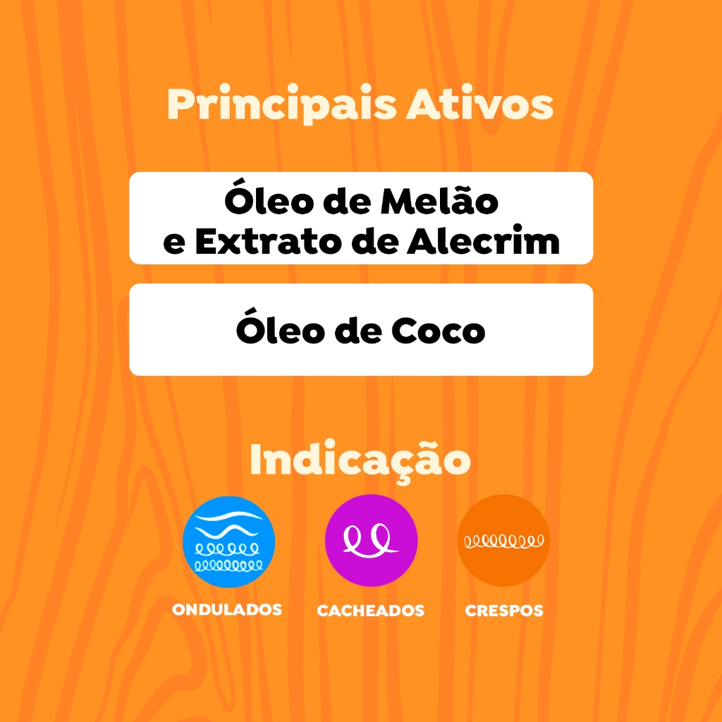 O Creme para Pentear Cachinhos Poderosos Melão garante super-hidratação para auxiliar no dia a dia, mantendo os fios sedosos, brilhantes e saudáveis. Com efeito condicionante, ajuda a desembaraçar e a deixar os fios macios, definidos e sem frizz. Contém filtro solar e é dermatologicamente testado. <>INDICAÇÕES$& Para quais tipos de cabelo? Cabelos ondulados, cacheados e crespos. Qual a indicação? Cabelos finos, quebradiços e com frizz. Pode usar a partir de quantos anos? A partir de 3 anos. <>ATIVOS$& Quais os principais ativos? Sua fórmula conta com óleo de melão, óleo de coco e extrato de alecrim, ativos que ajudam a manter os fios hidratados, saudáveis e fortes. Além disso, proporcionam desembaraço suave, maciez e brilho às ondinhas, aos cachinhos e crespinhos. <>MODO DE USO$& Qual a melhor forma de usar? Com os cabelos limpos e úmidos, aplique o Creme para Pentear mecha a mecha, uniformemente, no comprimento e pontas. Desembarace os fios e, em seguida, amasse-os, iniciando o movimento das pontas até a raiz. A aplicação ideal pode variar de acordo com o comprimento e o volume dos fios. Não enxágue. Quer cachinhos mais leves? É só não aplicar próximo à raiz. <>CARACTERÍSTICAS$& É produto vegano? O Creme para Pentear Cachinhos Poderosos Melão é vegano. É liberado? O Creme para Pentear Cachinhos Poderosos Melão não é liberado.