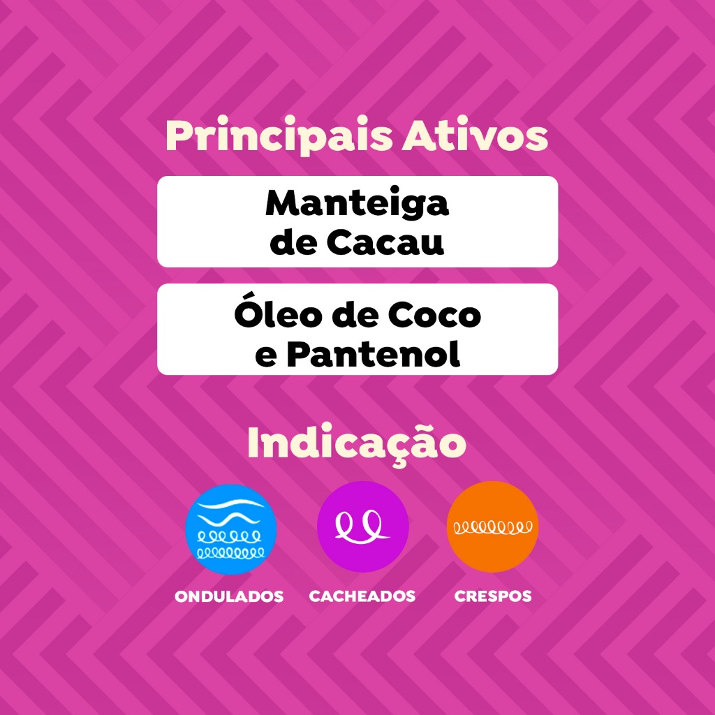 O Creme para Pentear Kids Cachinhos Nutridos Chocolate garante nutrição, definição superbrilhante e ação antifrizz. Com efeito condicionante, promove mais vitalidade e deixa os cachinhos sempre tratados, macios e sedosos. É dermatologicamente testado, na cor marrom e com cheirinho de chocolate. Contém filtro solar. <>INDICAÇÕES$& Para quais tipos de cabelo? Para cabelos ondulados, cacheados e crespos. Qual a indicação? Cabelos desnutridos, com frizz e ressecados. Pode usar a partir de quantos anos? A partir de 03 anos. <>ATIVOS$& Quais os principais ativos? Com manteiga de cacau, pantenol e óleo de coco, ativos com propriedades nutritivas, emolientes e umectantes e que proporcionam brilho, maciez e hidratação, deixando as ondinhas, os cachinhos e os crespinhos sedosos e sem frizz. <>MODO DE USO$& Qual a melhor forma de usar? Com os cabelos limpos e úmidos, aplique o Creme para Pentear mecha a mecha, uniformemente, no comprimento e pontas. Desembarace os fios e, em seguida, amasse-os, iniciando o movimento das pontas até a raiz. A aplicação ideal pode variar de acordo com o comprimento e o volume dos fios. Não enxágue. Quer cachinhos mais leves? É só não aplicar próximo à raiz. <>CARACTERÍSTICAS$& É produto vegano? O Creme para Pentear Kids Cachinhos Nutridos Chocolate é vegano. É liberado? O Creme para Pentear Kids Cachinhos Nutridos Chocolate não é liberado.