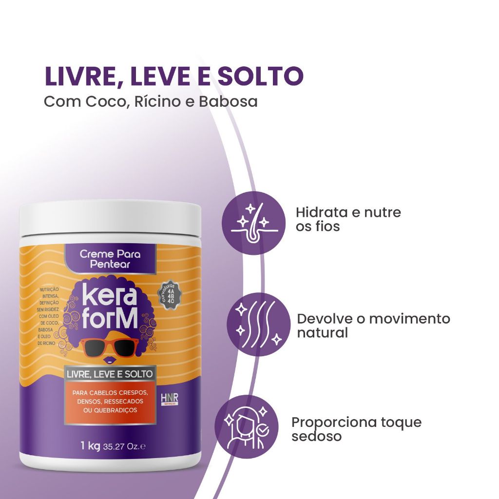 | Creme para Pentear Keraform Livre, Leve e Solto Cabelos este produto | R$ 22,50 | 8% | 4.8/5 | — |