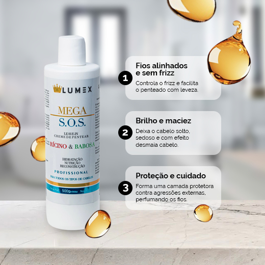 | Creme para Pentear Mega S.O.S Profissional Leave-in Lumex 500g – Br... este produto | R$ 22,97 | 71% | 4.9/5 | — |