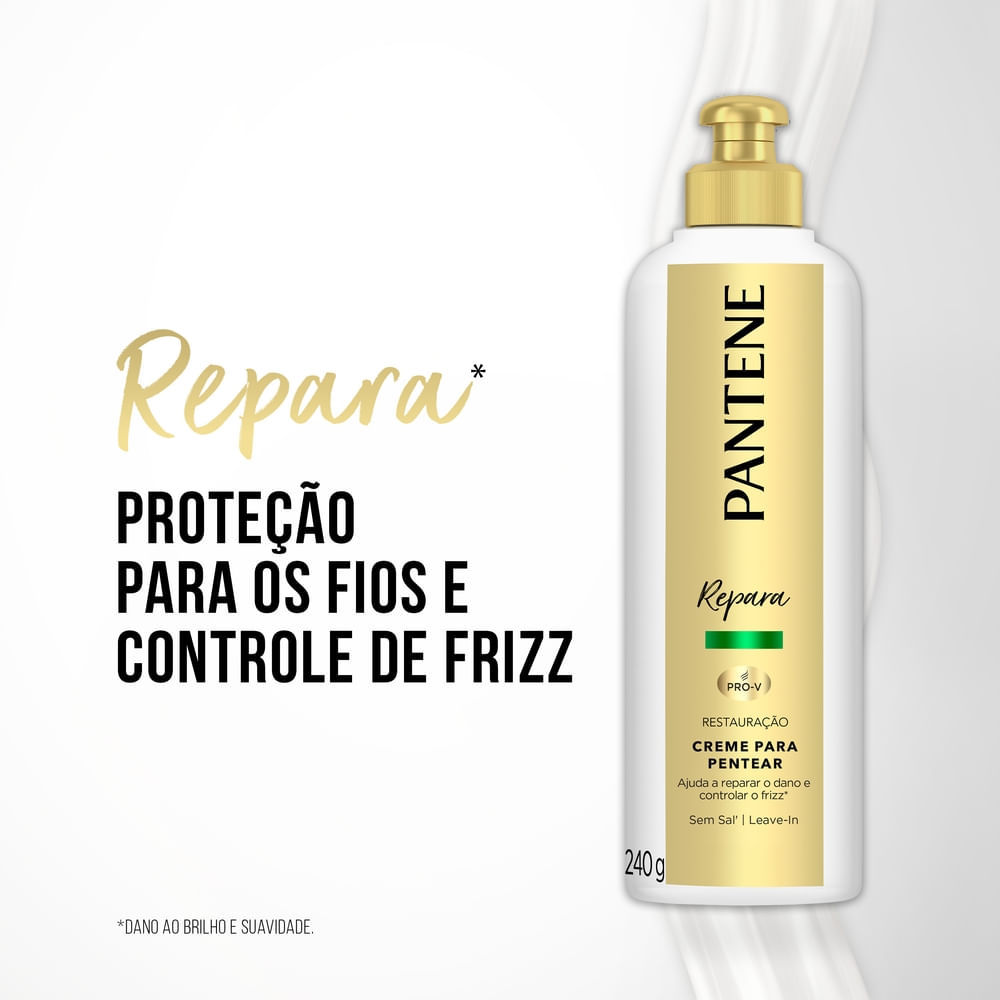 Creme de Pentear Pantene PRO-V Restauração, ajuda a reparar o dano* e controlar o frizz. Sua fórmula repara profundamente os sinais* de um cabelo danificado em instantes, com micro-selantes que proteg