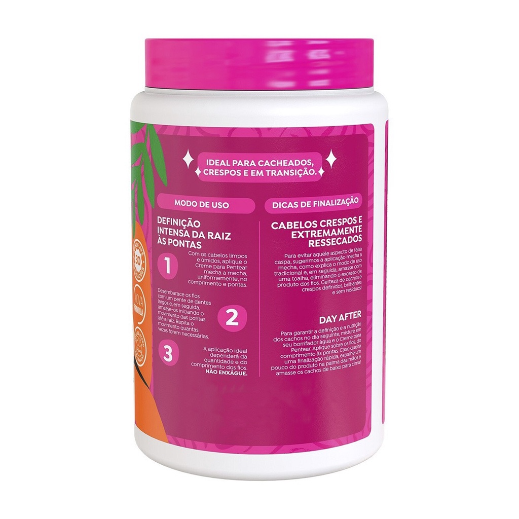 Com ativos poderosos, o Creme para Pentear Definição Intensa proporciona definição, brilho aos cabelos, desembaraço, controle do frizz e hidratação profunda em uma embalagem de 1kg que rende até 30 aplicações. Principais Ativos Óleo de coco: rico em vitaminas para o cabelo e ácidos graxos, fortalece os fios e proporciona brilho e maciez extrema. Óleo de amêndoas: possui propriedades nutritivas que recuperam o cabelo, proporcionando força e definição. Também auxilia na redução do frizz, sela as cutículas e garante brilho e maciez. Mel: rico em vitaminas, sais minerais e aminoácidos, o mel possui ação fortalecedora e ultra-hidratante. Também possui ação antioxidante e protege os fios. É produto vegano? O Creme para Pentear Definição Intensa não é vegano. É liberado? O Creme para Pentear Definição Intensa não é liberado. Modo de Uso Aplique o Creme para Pentear no cabelo úmido e espalhe mecha a mecha, do comprimento às pontas. Em seguida, desembarace com um pente de dentes largos e, depois, amasse de baixo para cima. Repita este movimento quantas vezes desejar. Se quiser controle de volume, aplique na raiz. Experimente outras formas de usar o seu creme Salon Line Cabelos crespos e ressecado: para evitar aquele aspecto de falsa caspa, experimente aplicar o produto mecha a mecha e, em seguida, amassar com uma toalha, eliminando o excesso de produto dos fios. Day After: se desejar uma definição mais duradoura no day after, misture em seu borrifador água e o Creme de Pentear. Aplique sobre os fios, do comprimento às pontas.