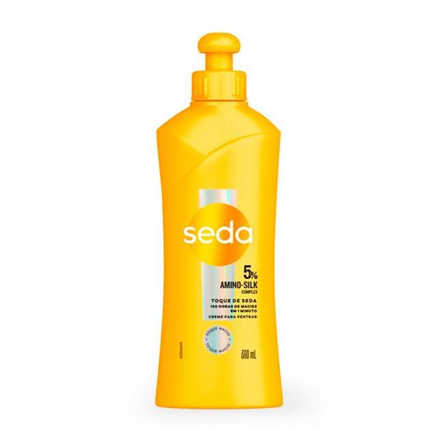 Creme para Pentear Seda Amino-Silk Complex Toque de Seda - Maciez por 100h, Brilho Intenso e Fios Sem Frizz O creme para pentear Toque de Seda de Seda é a escolha ideal para quem deseja cabelos fortes, macios e protegidos do frizz por até 100 horas. Formulado com 5% Amino-Silk Complex, este creme inovador conecta as fibras capilares, proporcionando um cabelo forte e macio em apenas 1 minuto. Com uma fórmula ultraleve e de rápida absorção, é ideal para uso diário, pois não pesa nos fios, deixando o cabelo forte, macio e alinhado. O resultado são cabelos protegidos, iluminados e com maciez excepcional. Experimente toda a linha SEDA Toque de Seda, um regime completo para todos os tipos de cabelo. Benefícios: - Fórmula com 5% Amino-Silk Complex e toque macio. - Conecta as fibras capilares, proporcionando cabelos mais fortes e macios em apenas 1 minuto. - Redução do frizz por até 100 horas. - Nutrição intensa e proteção térmica até 230º. - Fórmula ultraleve, de uso diário. - Não pesa nos fios. Como Usar? Pode ser aplicado diretamente nos cabelos úmidos, sem necessidade de enxágue, deixando-os prontos para pentear e finalizar como de costume. Sobre Seda Seda é uma das marcas mais amadas quando o assunto é cuidado capilar, oferecendo soluções inovadoras para todos os tipos de cabelo. A marca é referência em hidratação, nutrição e reconstrução dos fios, sempre combinando ciência e beleza.